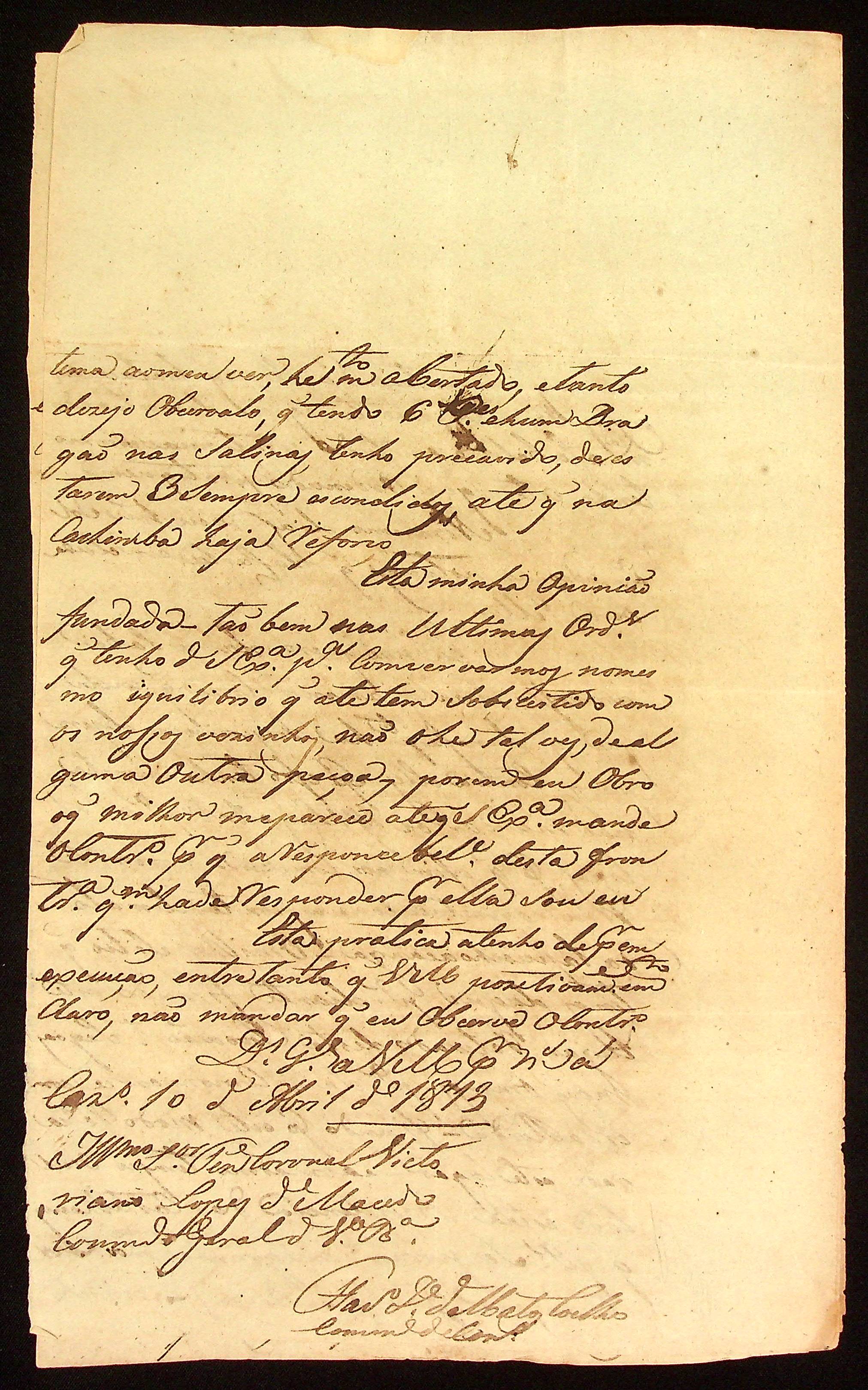 CARTA do Comandante de Casalvasco Flaviano José de Matos Coelho ao Tenente-Coronel e Comandante Geral de Vila Bela Vitoriano Lopes de Macedo.