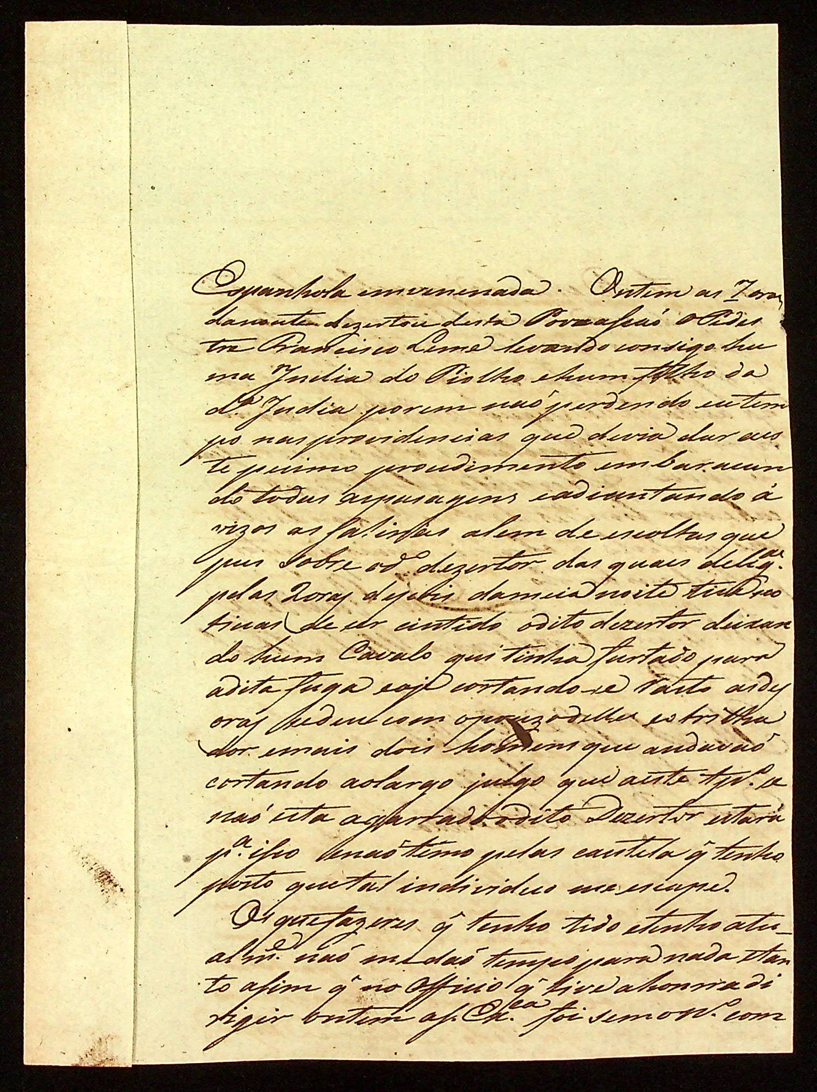 CARTA enviada ao Tenente-Coronel Comandante de Vila Bela da Santíssima TrindadeVitoriano Lopes de Macedo.