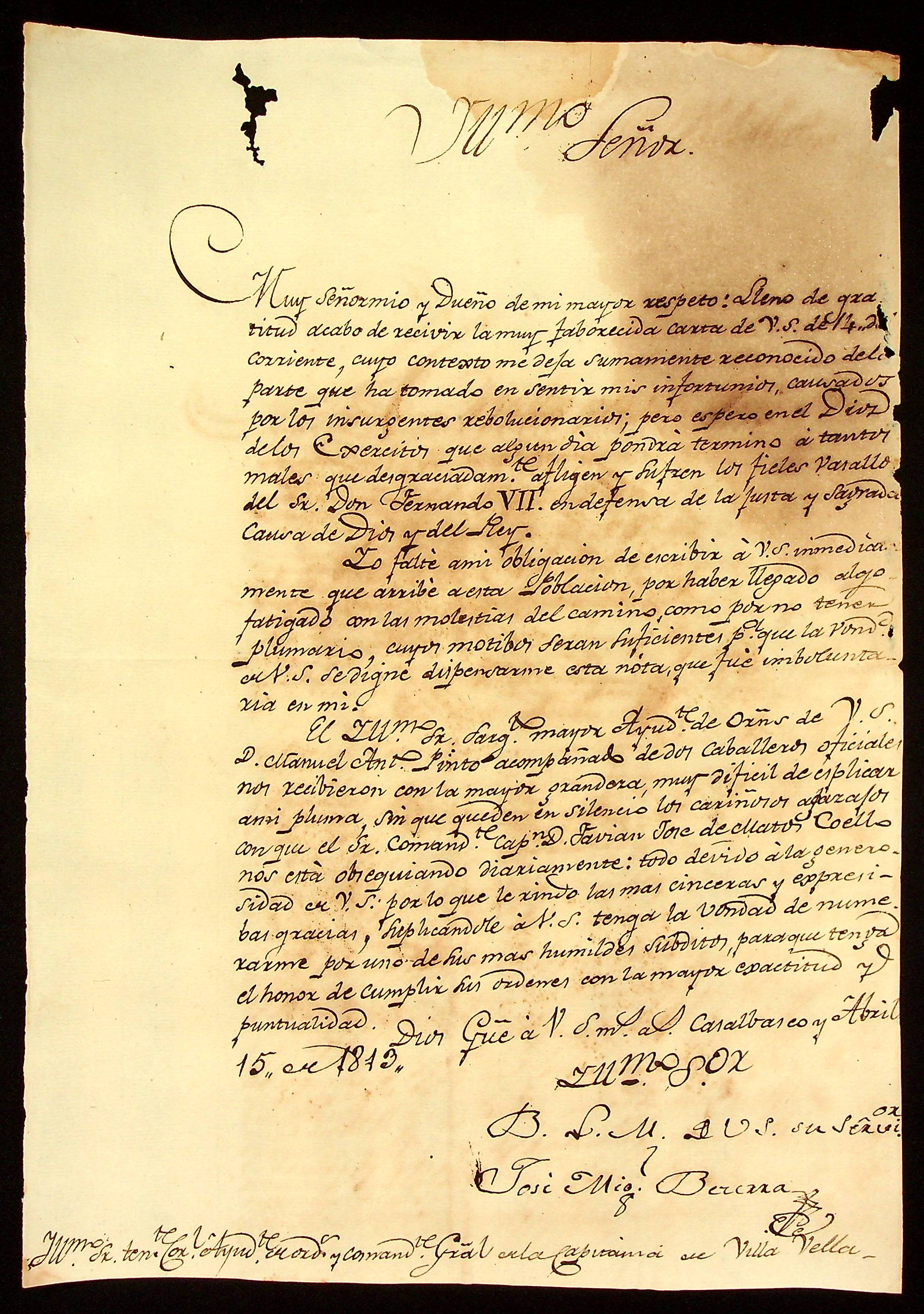 CARTA de José Miguel Bezerra ao Tenente-Coronel Ajudante de Ordens Comandante Geral [Vitoriano Lopes de Macedo].