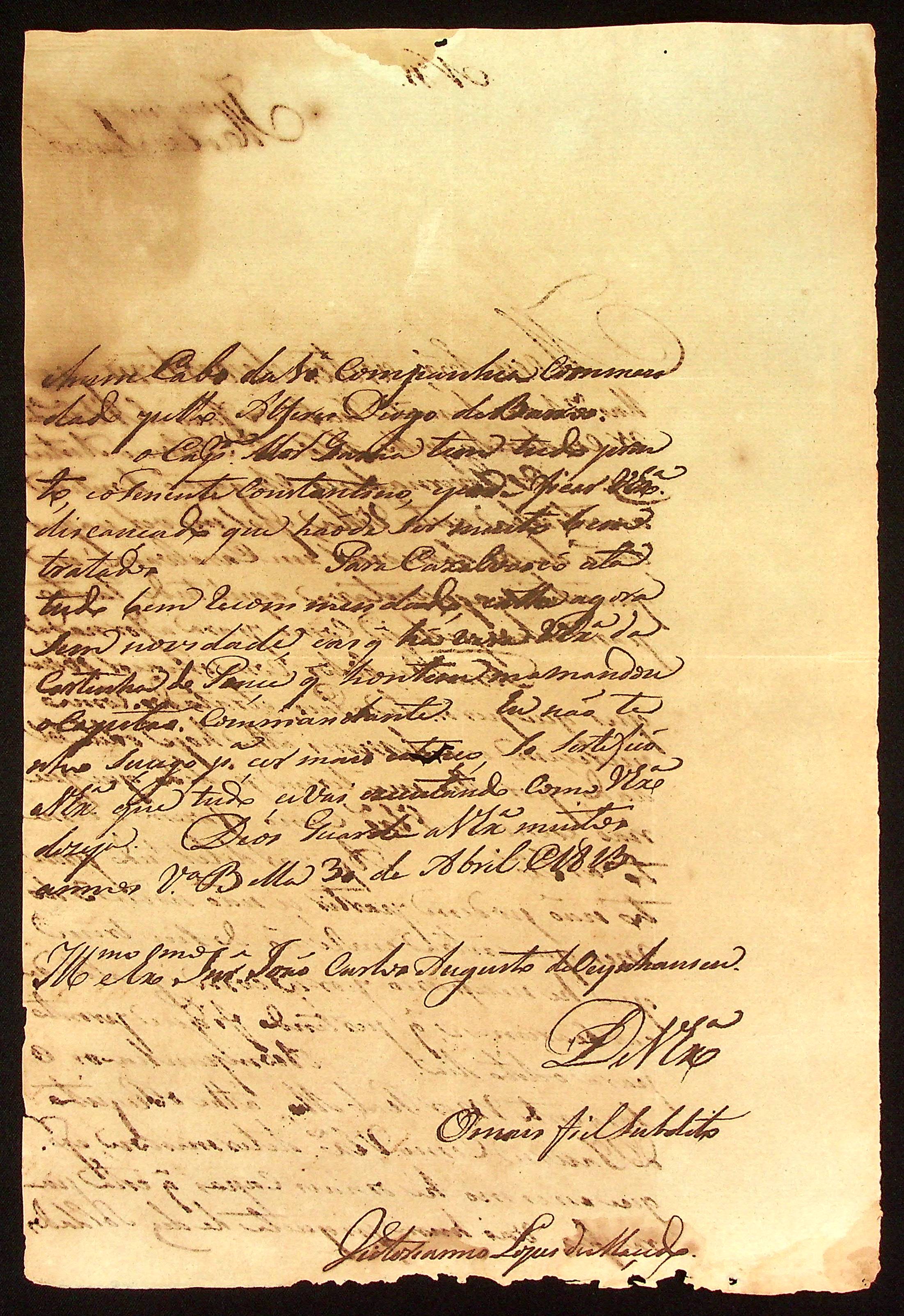 CARTA do [Tenente-Coronel] Vitoriano Lopes de Macedo ao [Governador e Capitão-General da Capitania de Mato Grosso] João Carlos Augusto d’Oeynhausen e Gravenberg.