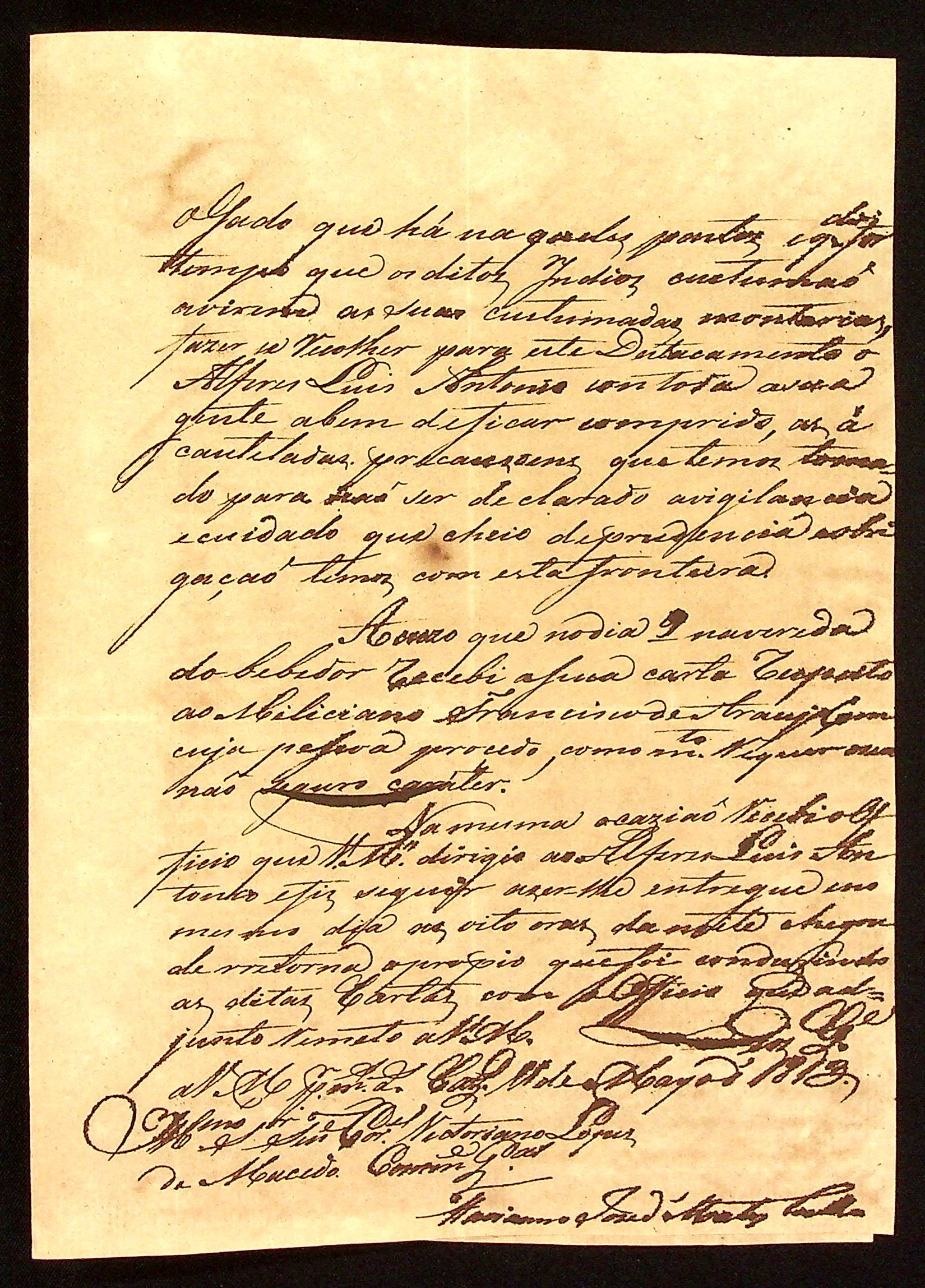CARTA do [Comandante de Casalvasco] Flaviano José de Matos Coelho ao Tenente-Coronel e Comandante Geral Vitoriano Lopes de Macedo.