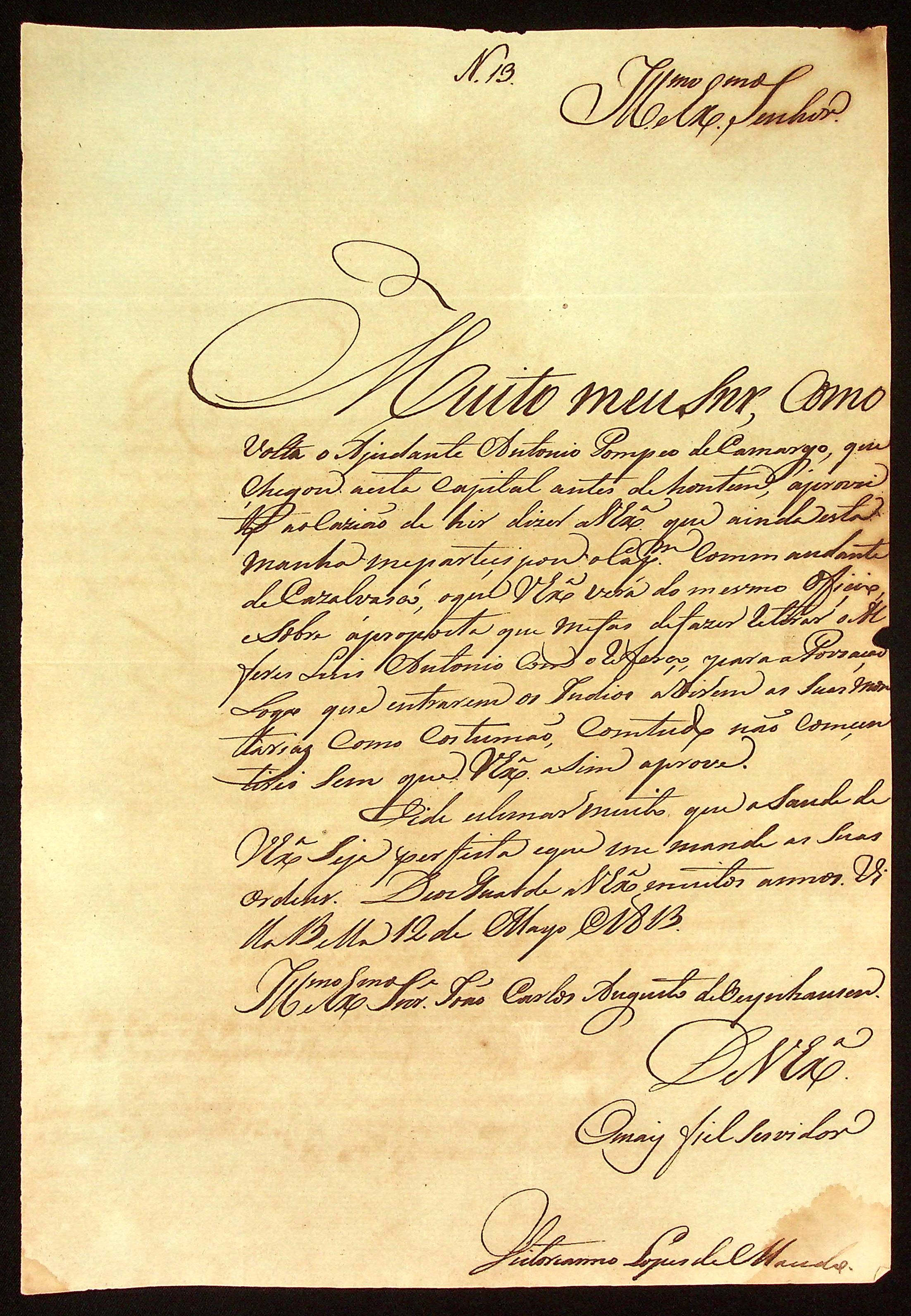 CARTA do [Tenente-Coronel] Vitoriano Lopes de Macedo ao [Governador e Capitão-General da Capitania de Mato Grosso] João Carlos Augusto d’Oeynhausen e Gravenberg.