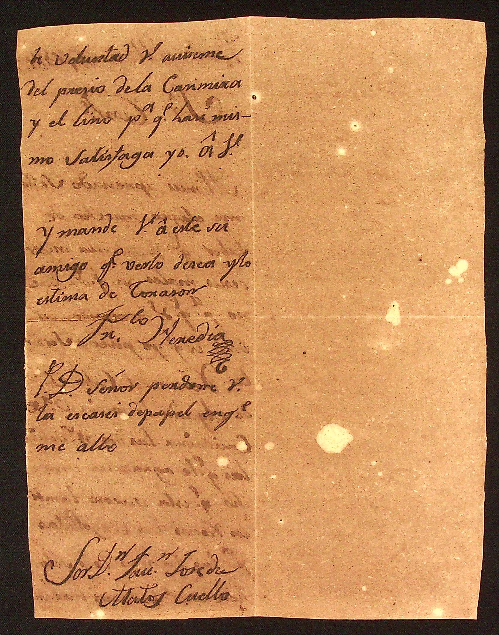 CARTA de Francisco [Heredia] ao Capitão Comandante Flaviano José de Matos Coelho.