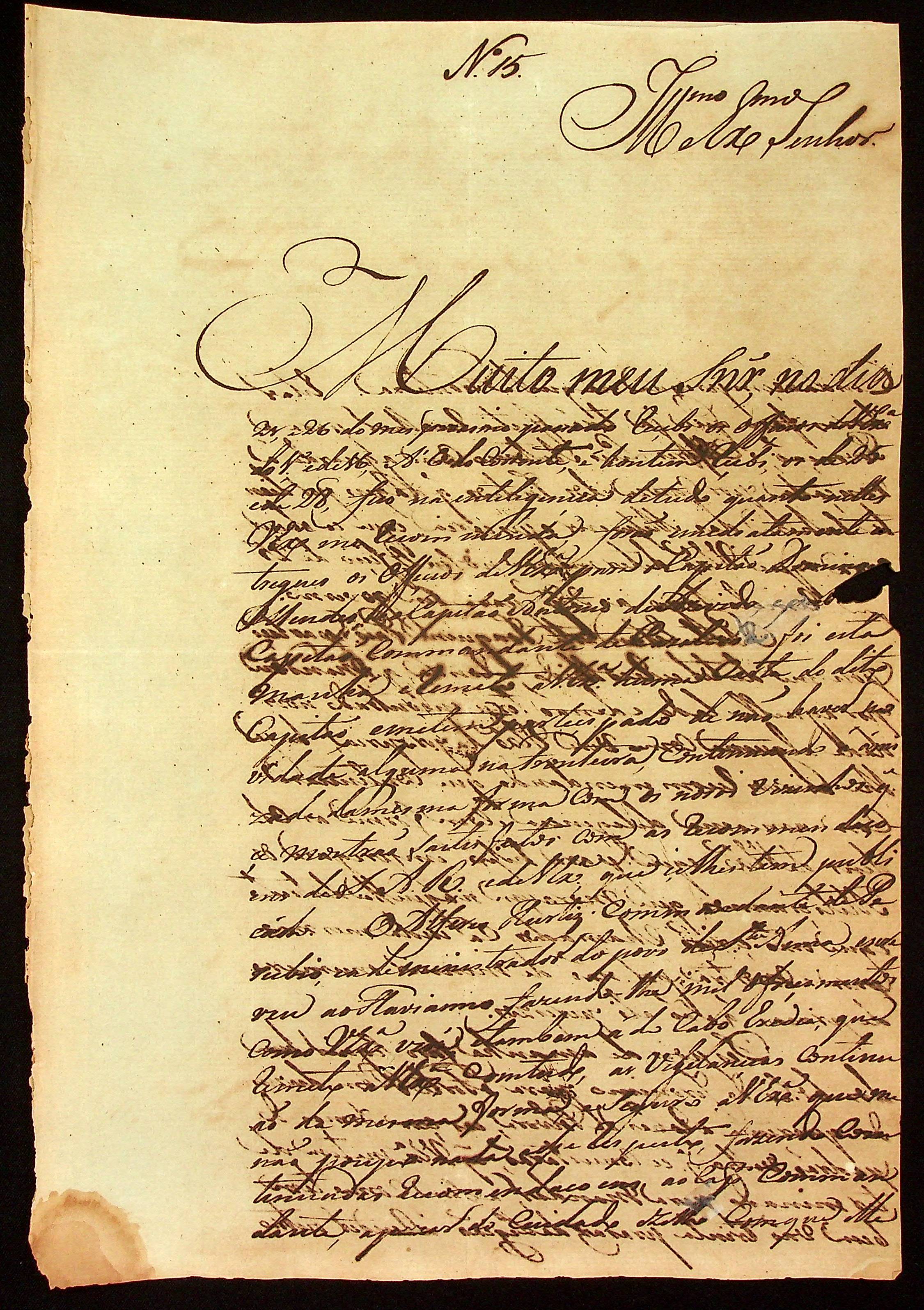 CARTA do [Tenente-Coronel] Vitoriano Lopes de Macedo ao [Governador e Capitão-General da Capitania de Mato Grosso] João Carlos Augusto d’Oeynhausen e Gravenberg.