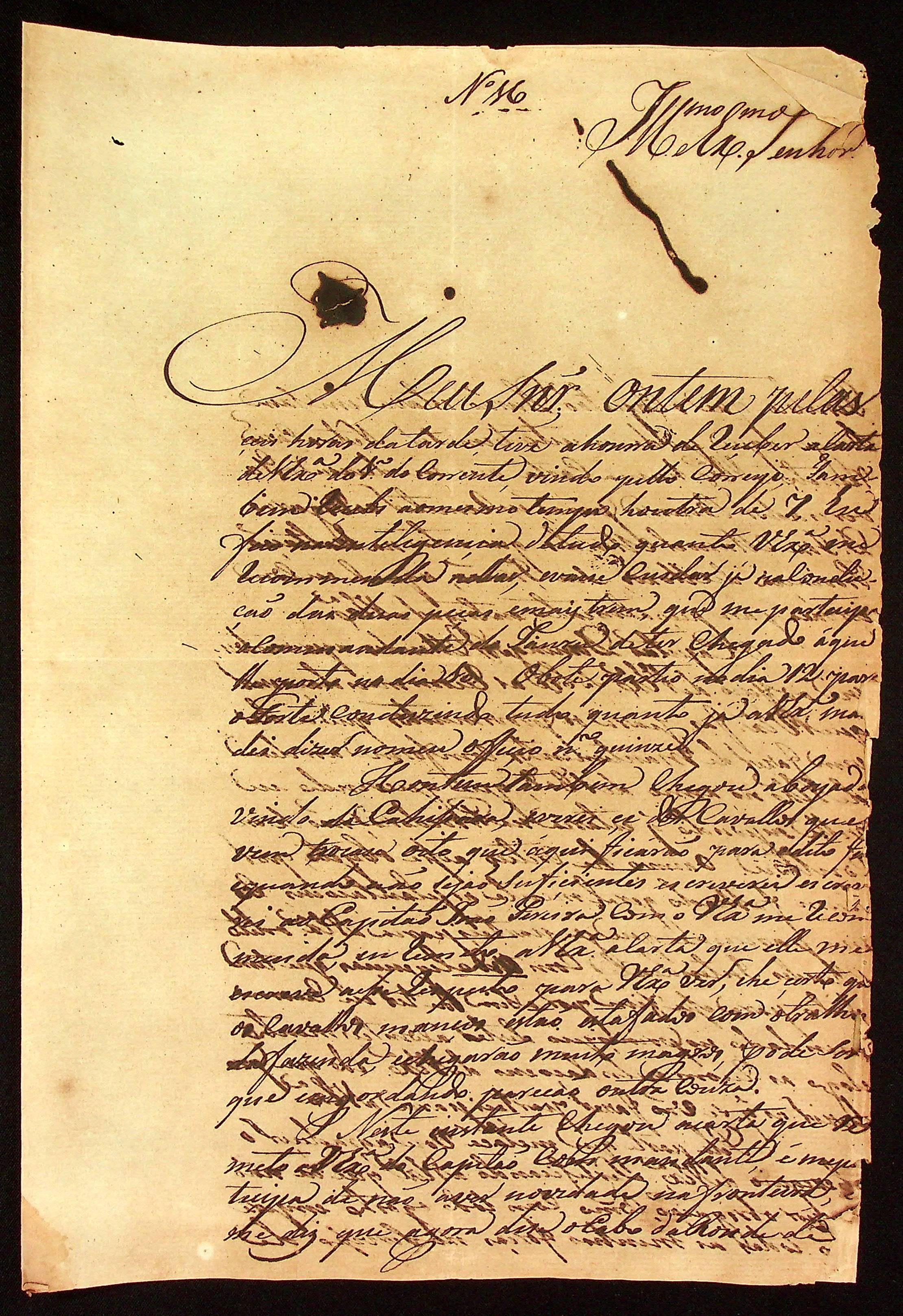 CARTA do [Tenente-Coronel] Vitoriano Lopes de Macedo ao [Governador e Capitão-General da Capitania de Mato Grosso] João Carlos Augusto d’Oeynhausen e Gravenberg.