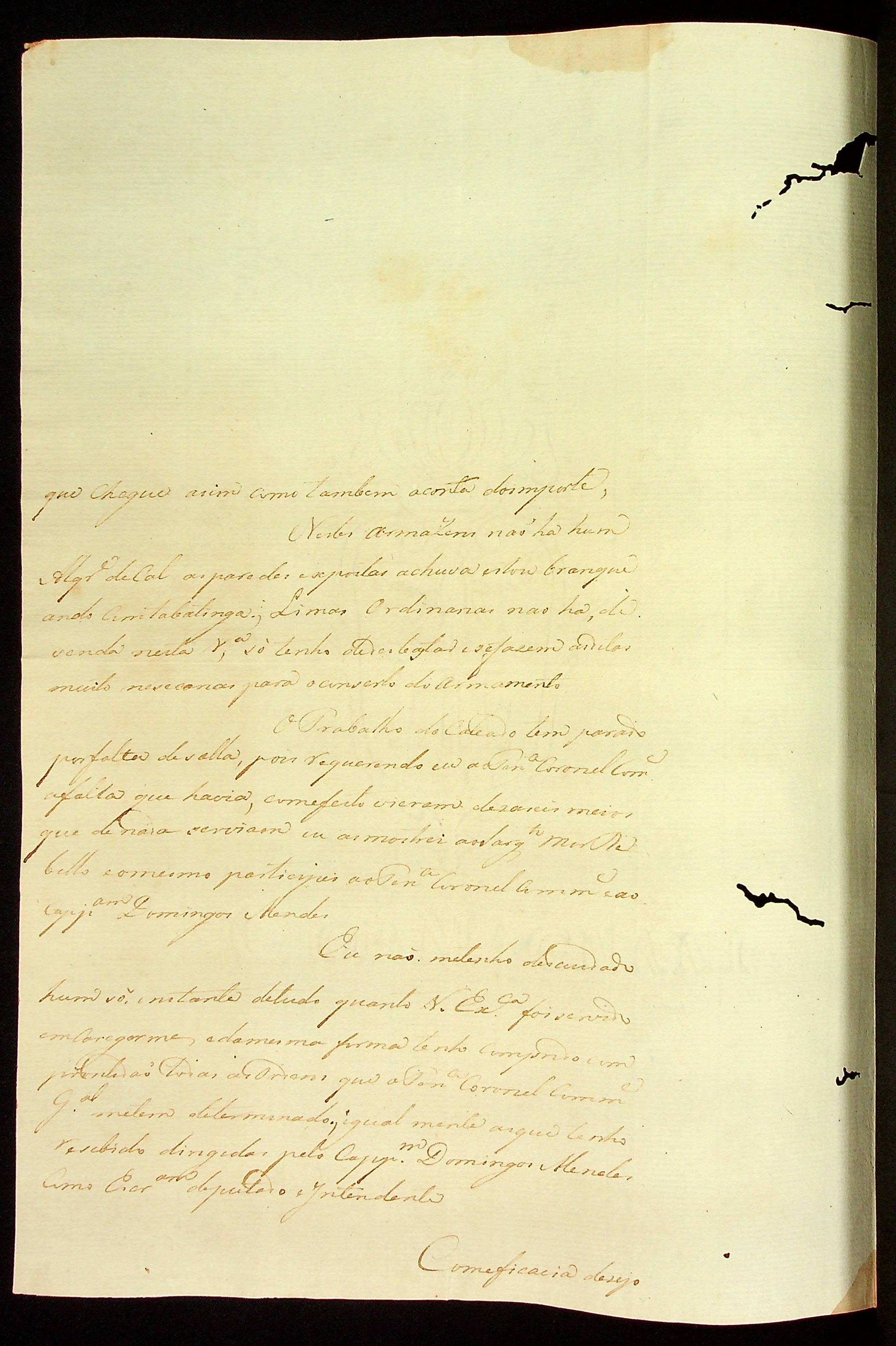CARTA do [Capitão] José Francisco da Cruz ao [Governador e Capitão-General da Capitania de Mato Grosso] João Carlos Augusto d’Oeynhausen e Gravenberg.