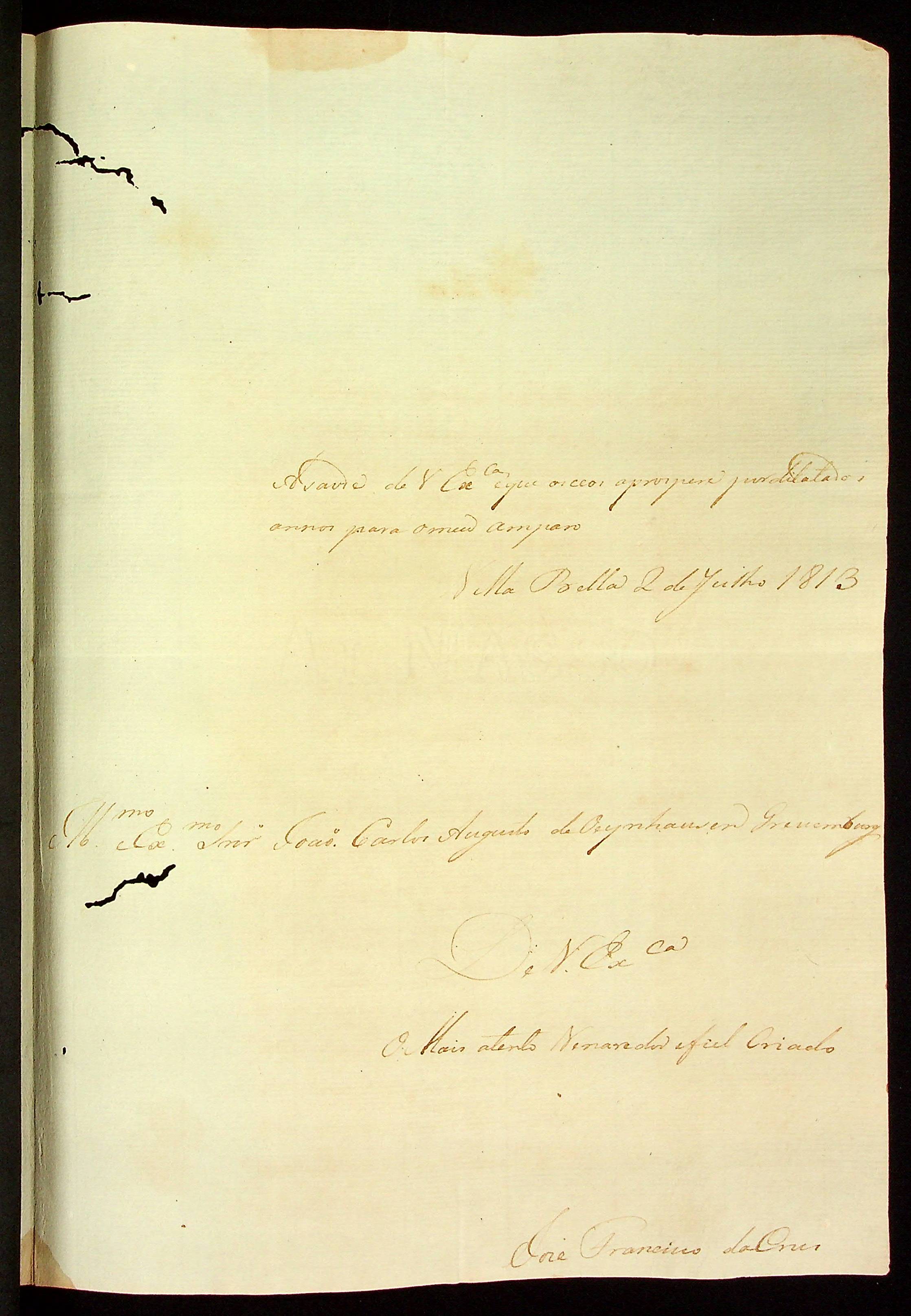 CARTA do [Capitão] José Francisco da Cruz ao [Governador e Capitão-General da Capitania de Mato Grosso] João Carlos Augusto d’Oeynhausen e Gravenberg.