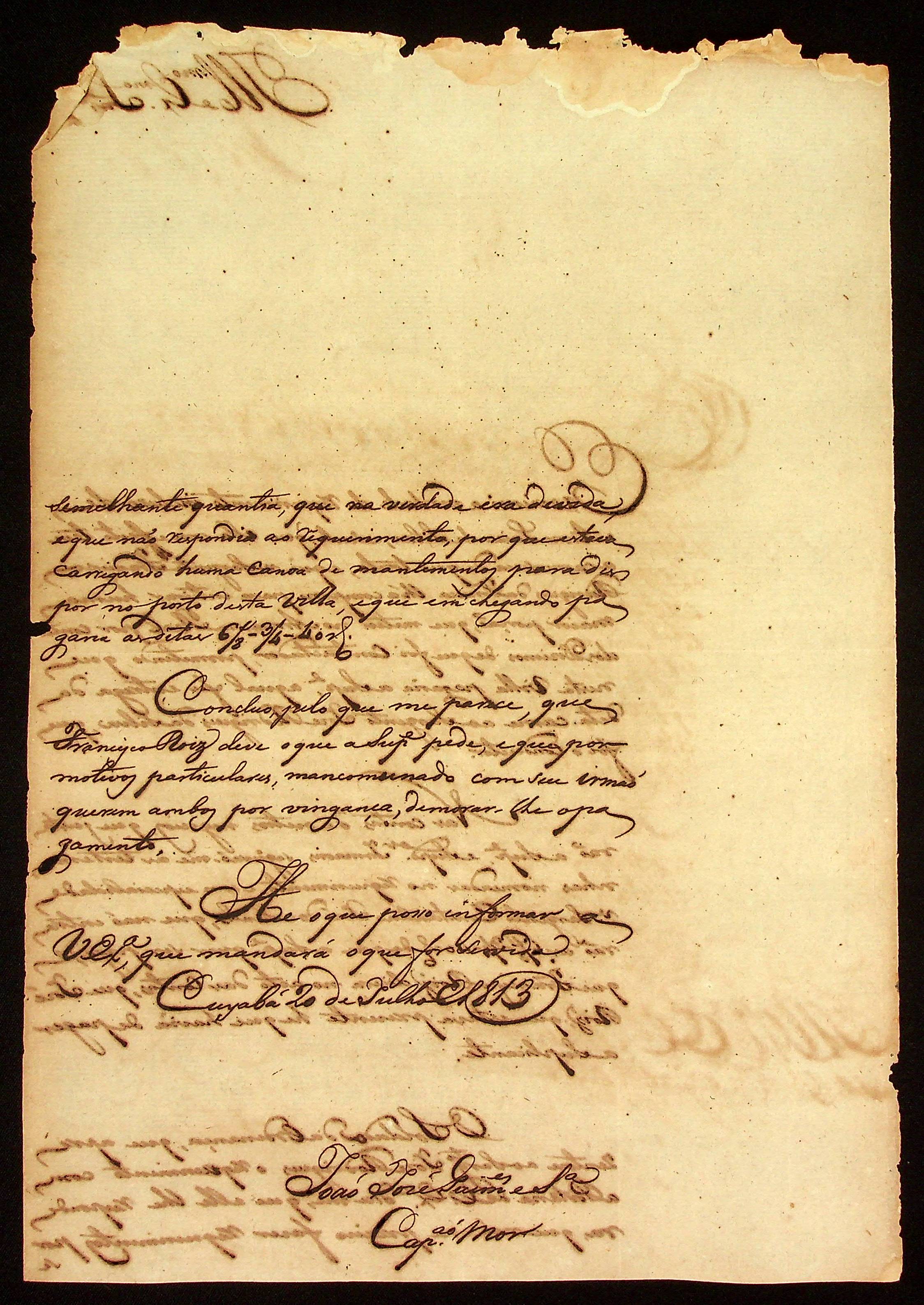 CARTA do Capitão-mor João José Guimarães e Silva ao [Governador e Capitão-General da Capitania de Mato Grosso] João Carlos Augusto d’Oeynhausen e Gravenberg.