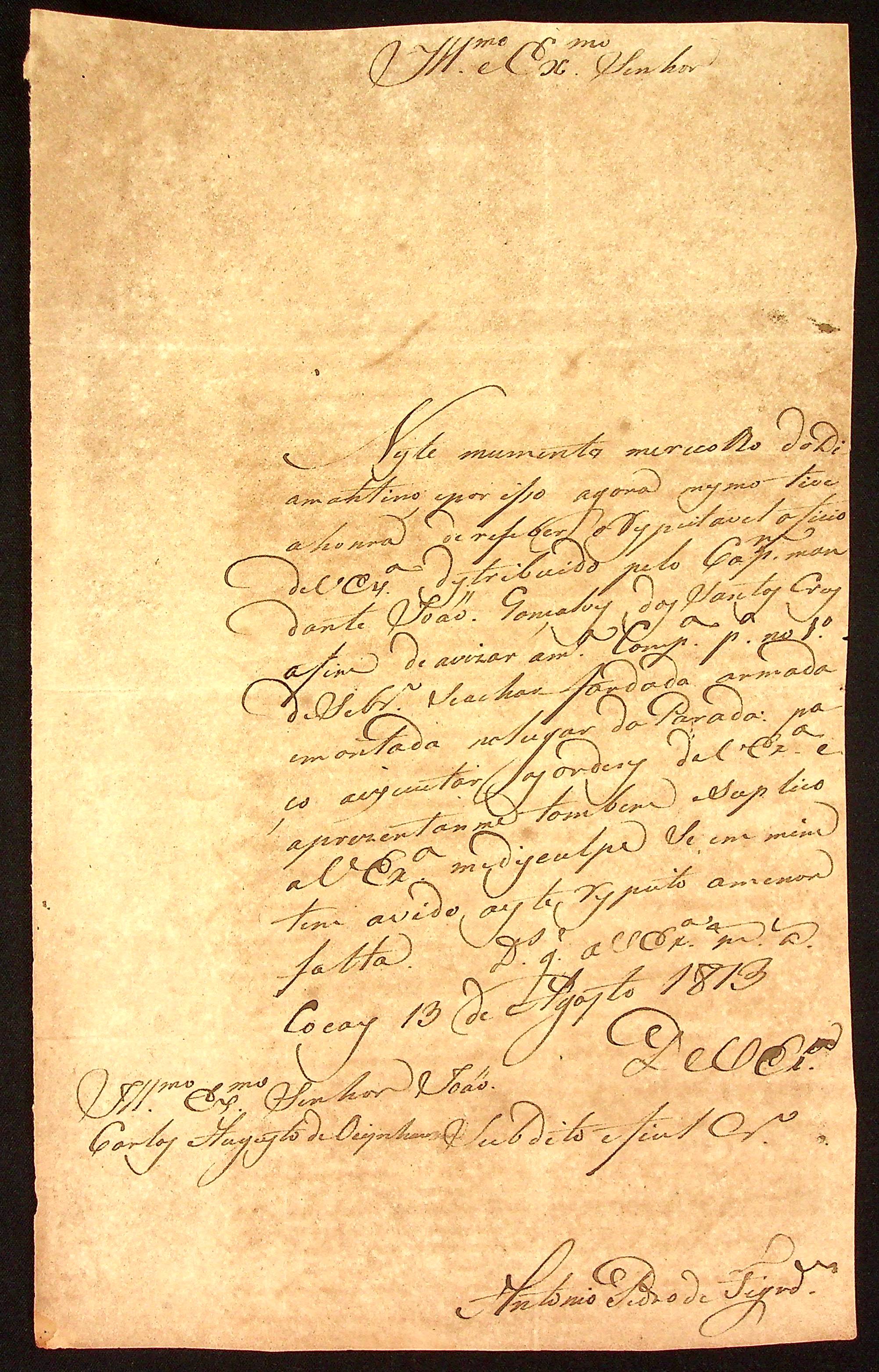 CARTA de Antônio Pedro de Figueiredo ao [Governador e Capitão-General da Capitania de Mato Grosso] João Carlos Augusto d’Oeynhausen e Gravenberg.