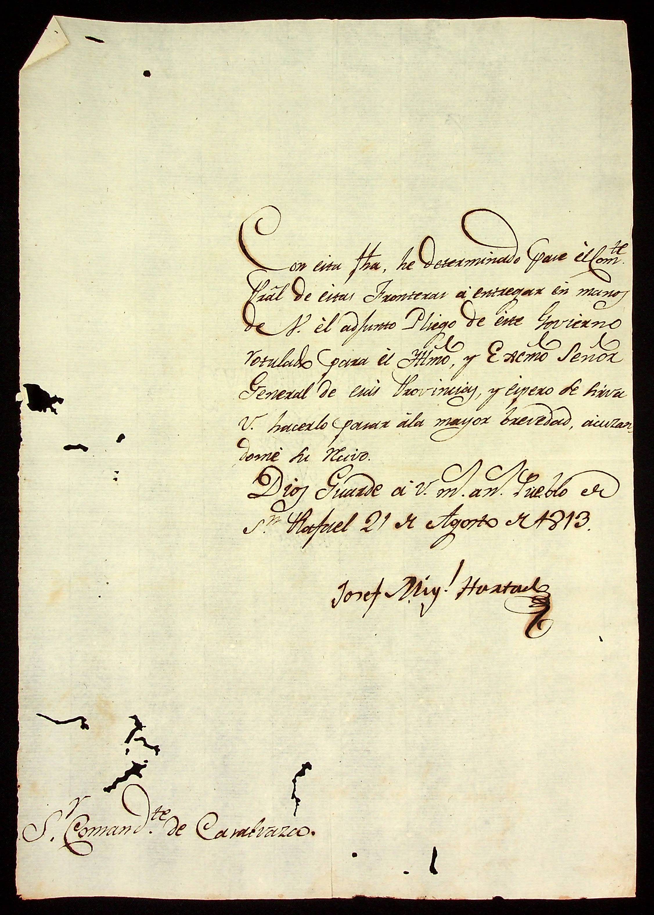 CARTA de Josef Miguel Furtado ao Comandante de Casalvasco [Flaviano José de Matos].