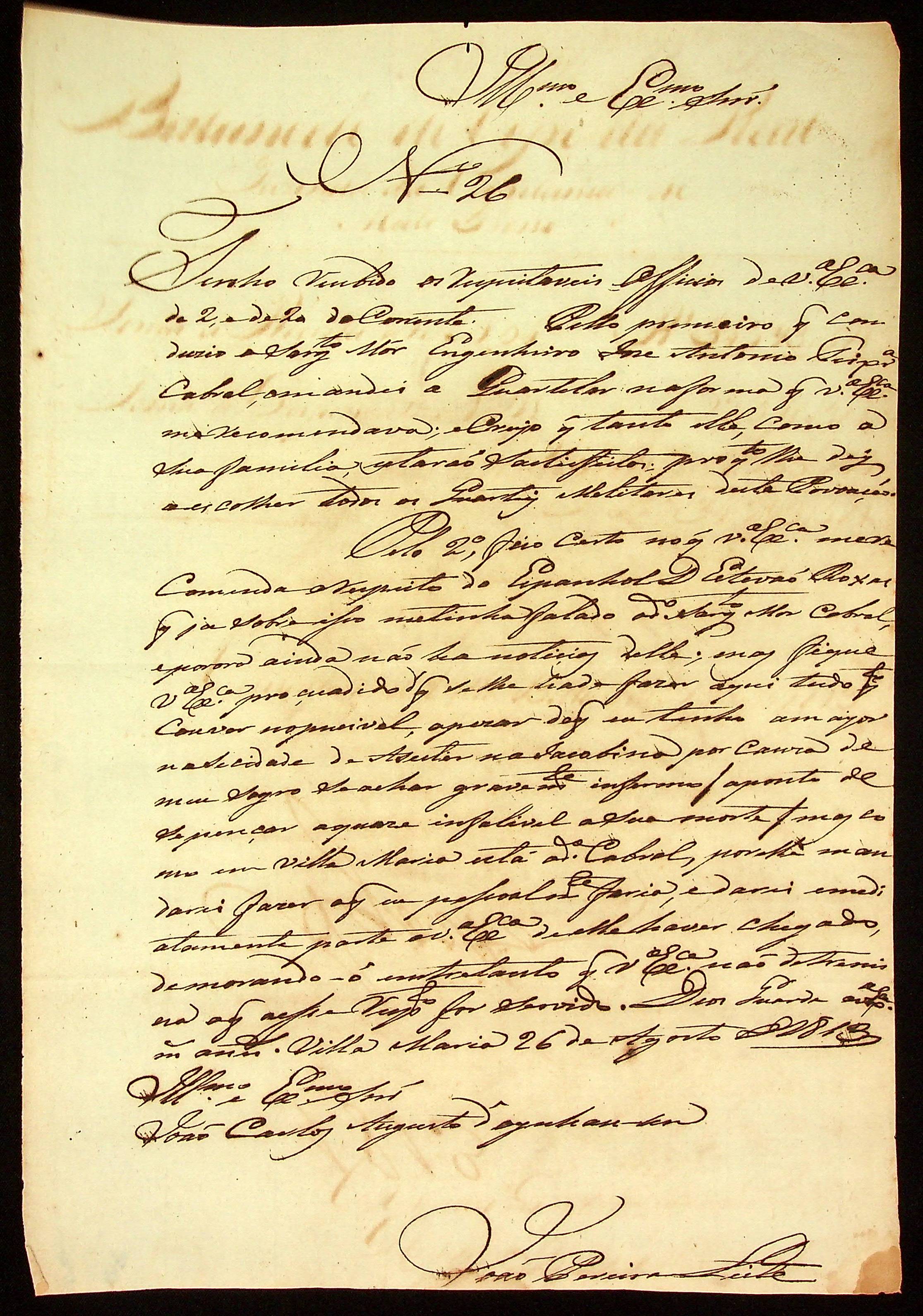 CARTA de João Pereira Leite ao [Governador e Capitão-General da Capitania de Mato Grosso] João Carlos Augusto d’Oeynhausen e Gravenberg.