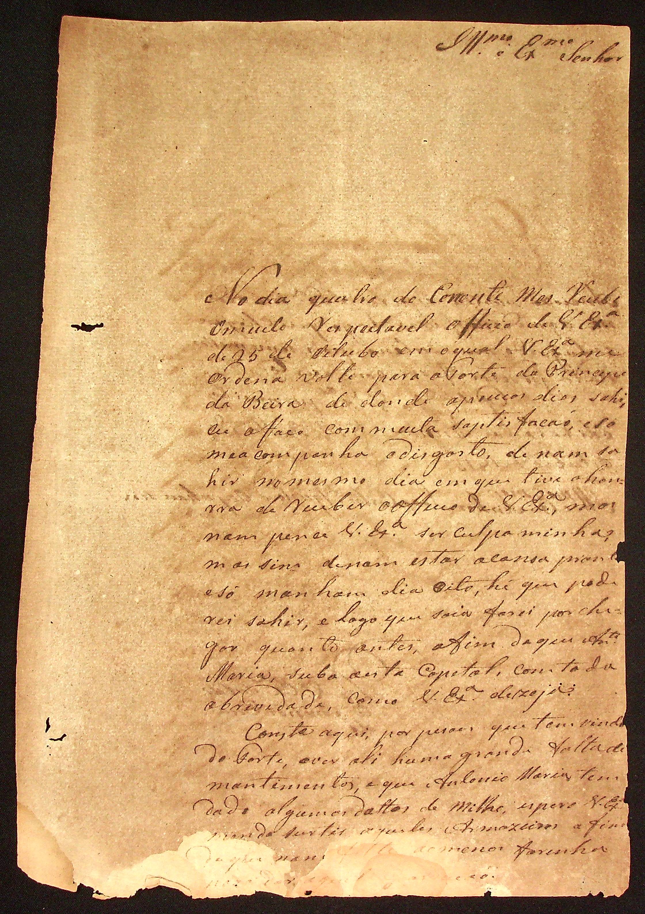 CARTA de Manoel Antônio Pinto ao [Governador e Capitão-General da Capitania de Mato Grosso] João Carlos Augusto d’Oeynhausen e Gravenberg.
