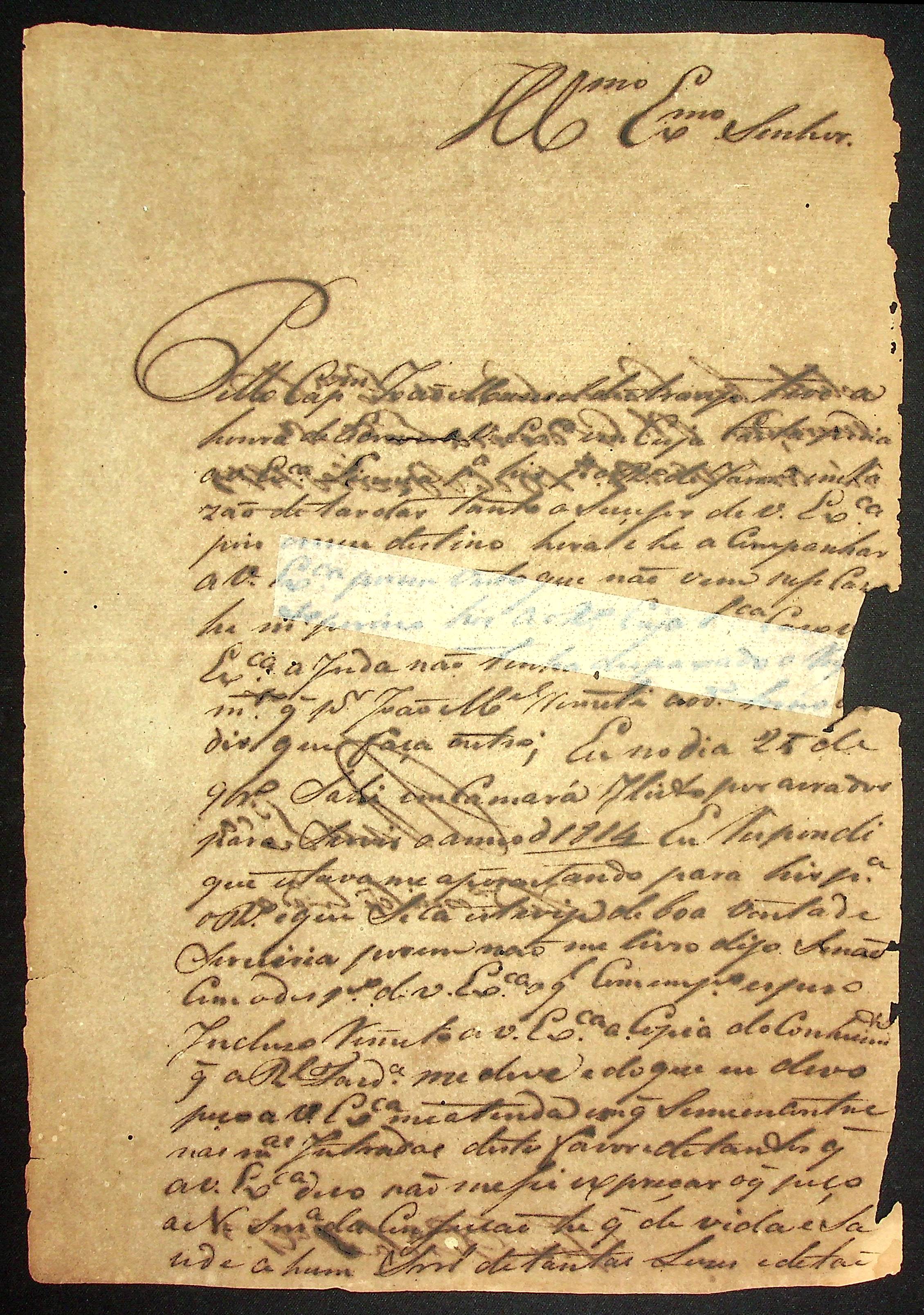 CARTA de José [Pereira] da [Silva] ao [Governador e Capitão-General da Capitania de Mato Grosso] João Carlos Augusto d’Oeynhausen e Gravenberg.