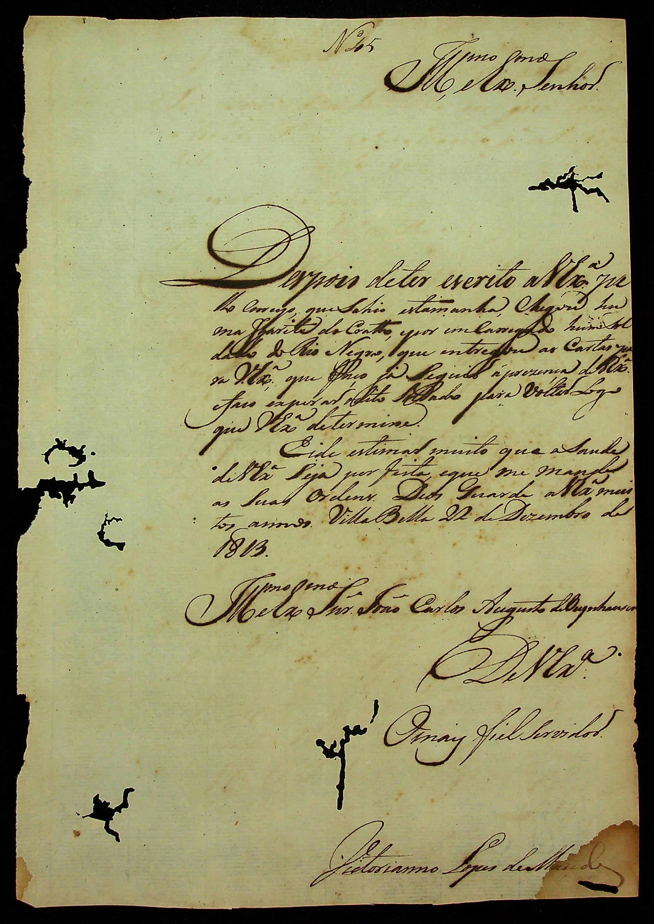 CARTA do [Tenente-Coronel] Vitoriano Lopes de Macedo ao [Governador e Capitão-General da Capitania de Mato Grosso] João Carlos Augusto d’Oeynhausen e Gravenberg.