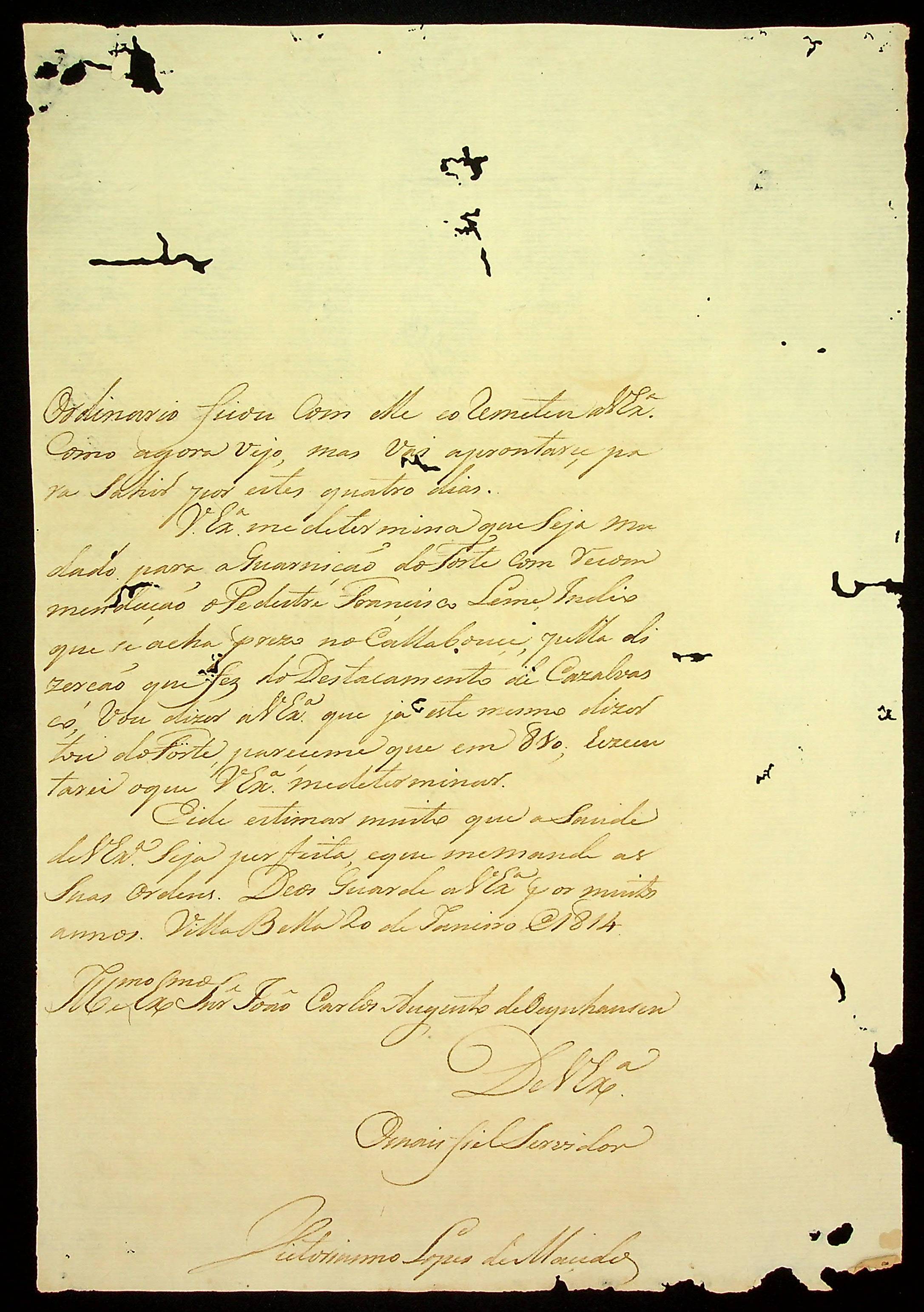 CARTA do [Tenente-Coronel] Vitoriano Lopes de Macedo ao [Governador e Capitão-General da Capitania de Mato Grosso] João Carlos Augusto d’Oeynhausen e Gravenberg.