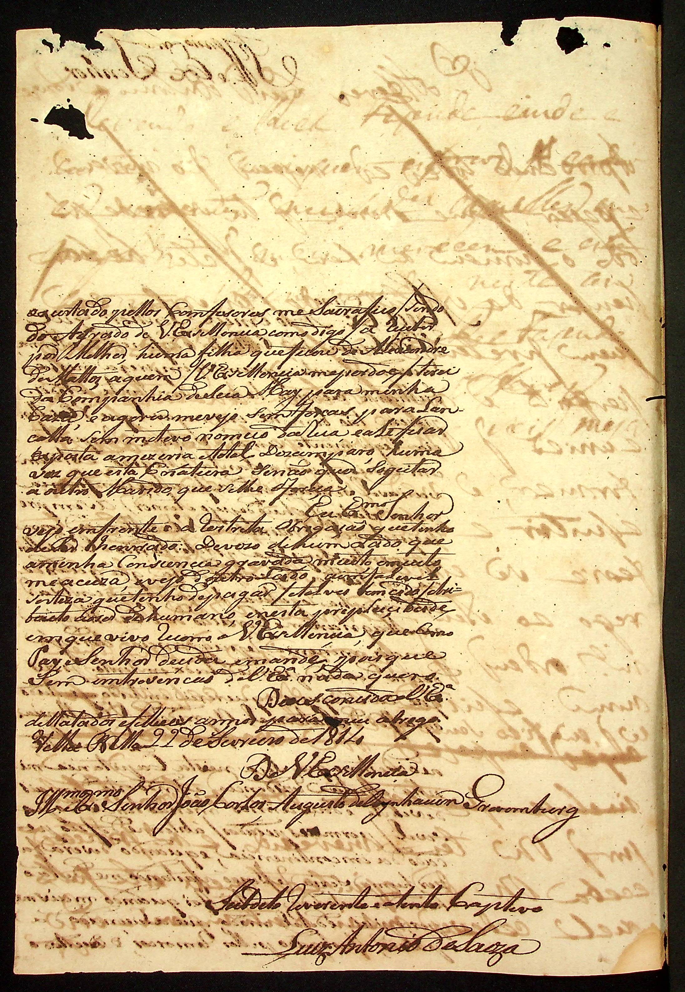 CARTA do Alferes Luiz Antônio de Souza ao [Governador e Capitão-General da Capitania de Mato Grosso] João Carlos Augusto d’Oeynhausen e Gravenberg.