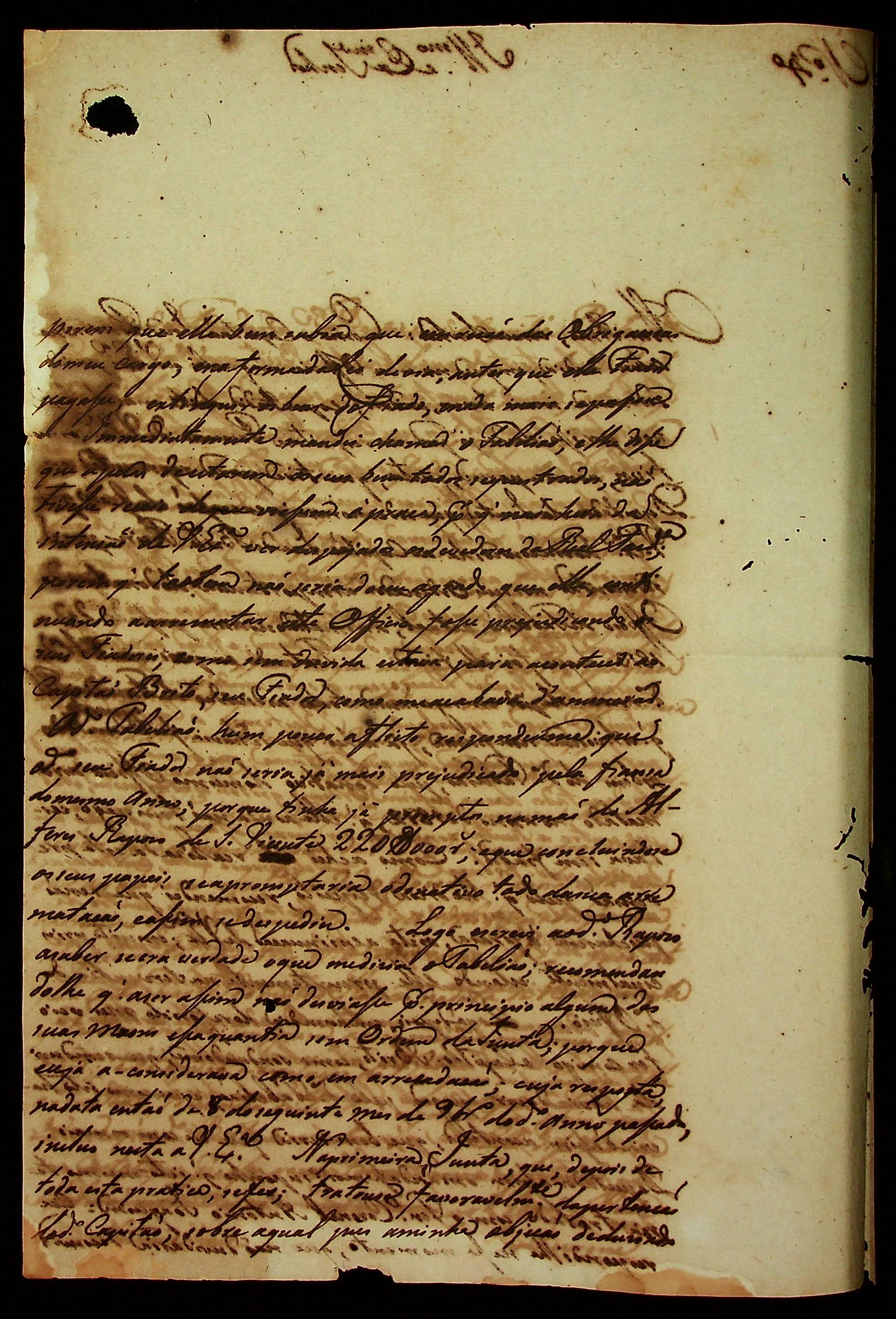 CARTA do [Sargento-mor] Manoel Rebelo Leite ao [Governador e Capitão-General da Capitania de Mato Grosso] João Carlos Augusto d’Oeynhausen e Gravenberg.