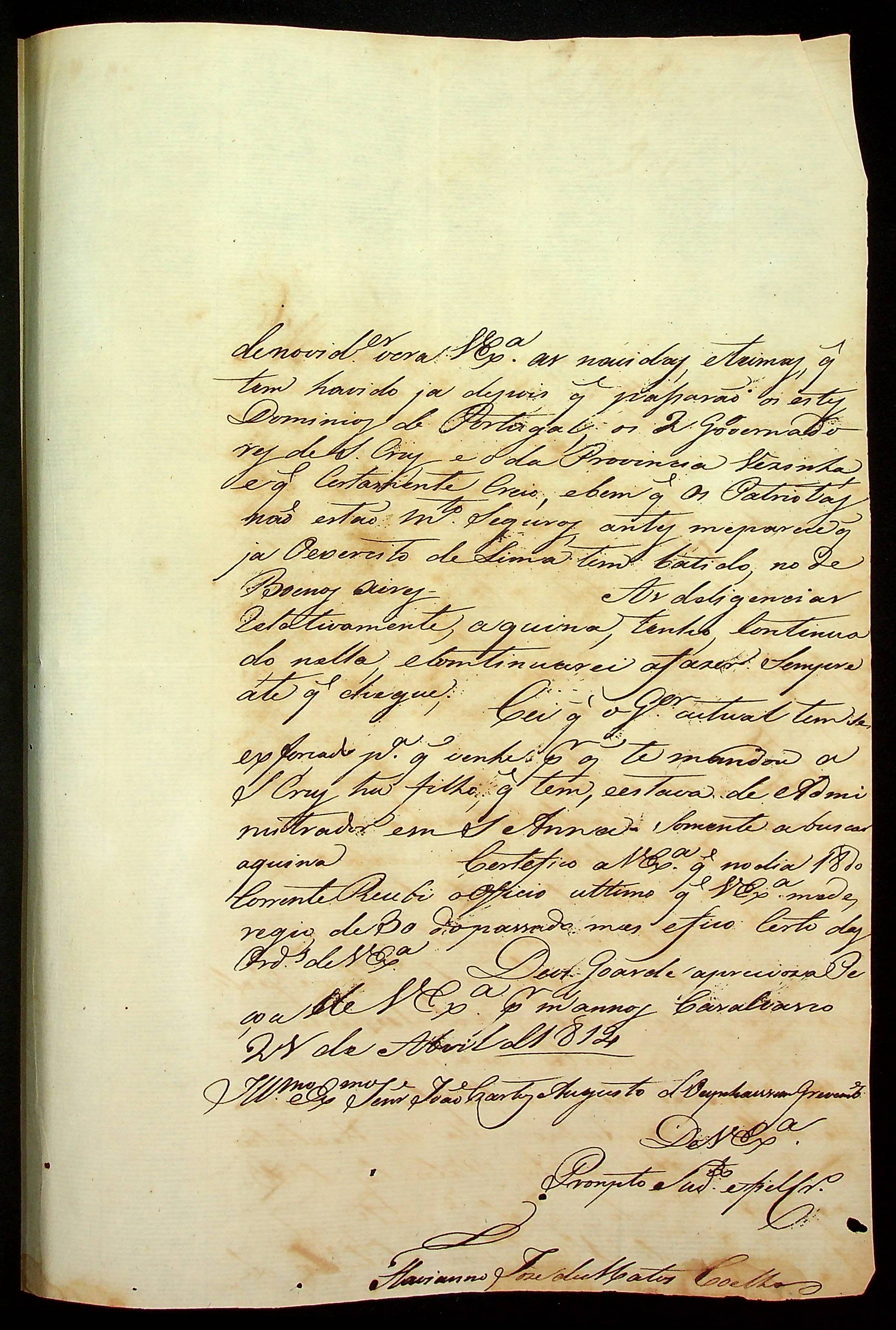 CARTA do [Capitão e Comandante] Flaviano José de Matos Coelho ao [Governador e Capitão-General da Capitania de Mato Grosso] João Carlos Augusto d’Oeynhausen e Gravenberg.