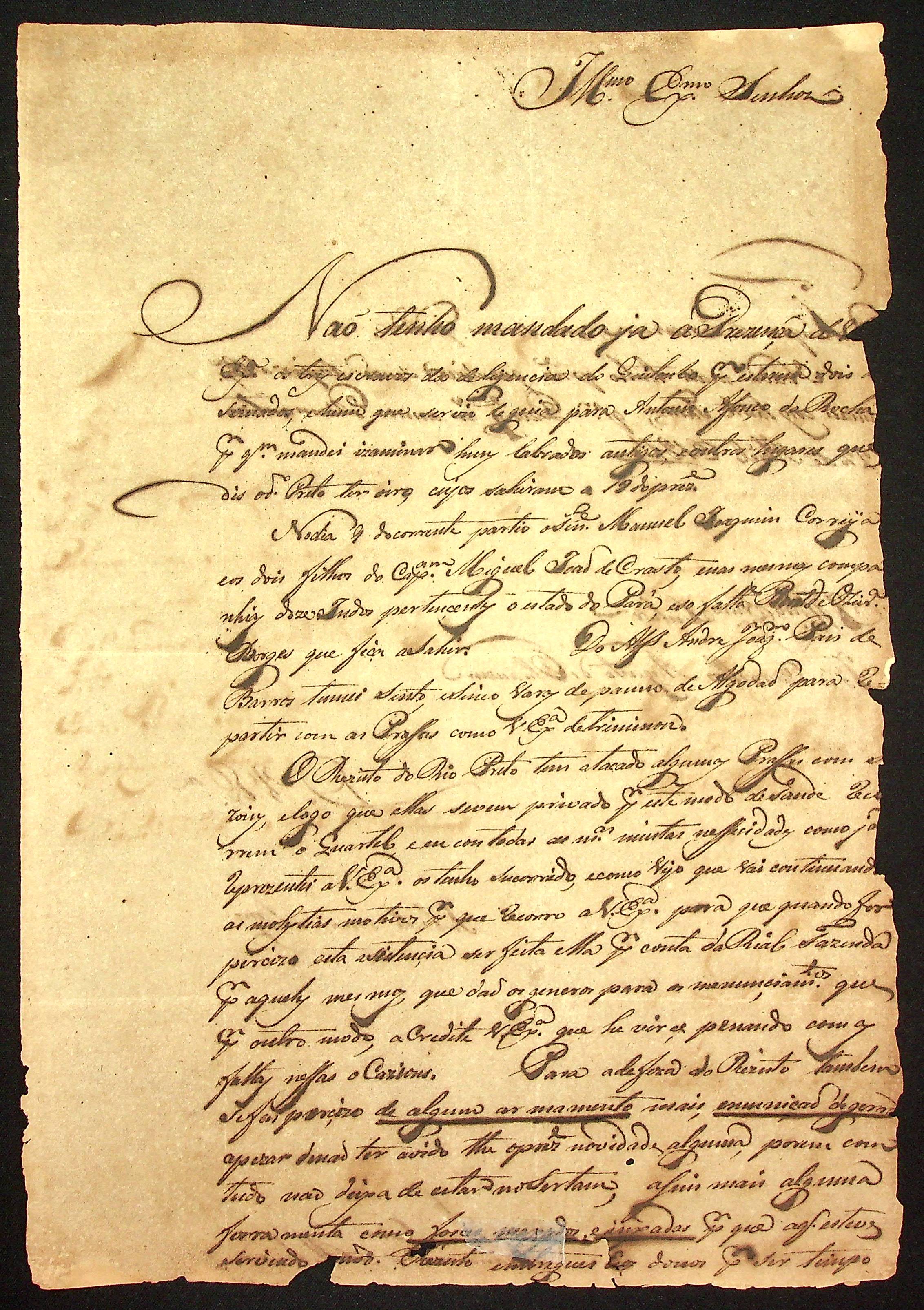 CARTA de Francisco Xavier Ribeiro ao [Governador e Capitão-General da Capitania de Mato Grosso] João Carlos Augusto d’Oeynhausen e Gravenberg.