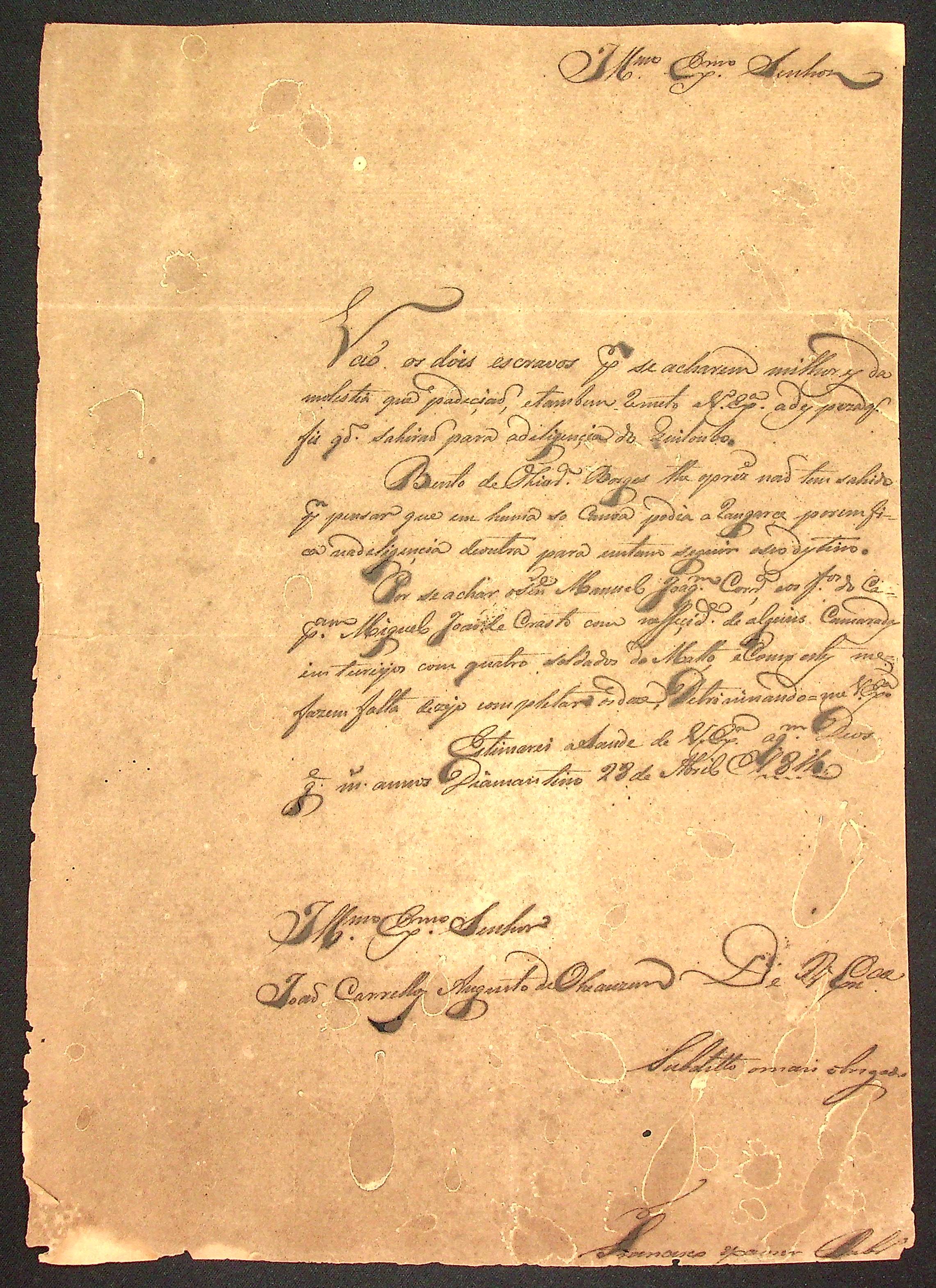 CARTA de Francisco Xavier Ribeiro ao [Governador e Capitão-General da Capitania de Mato Grosso] João Carlos Augusto d’Oeynhausen e Gravenberg.