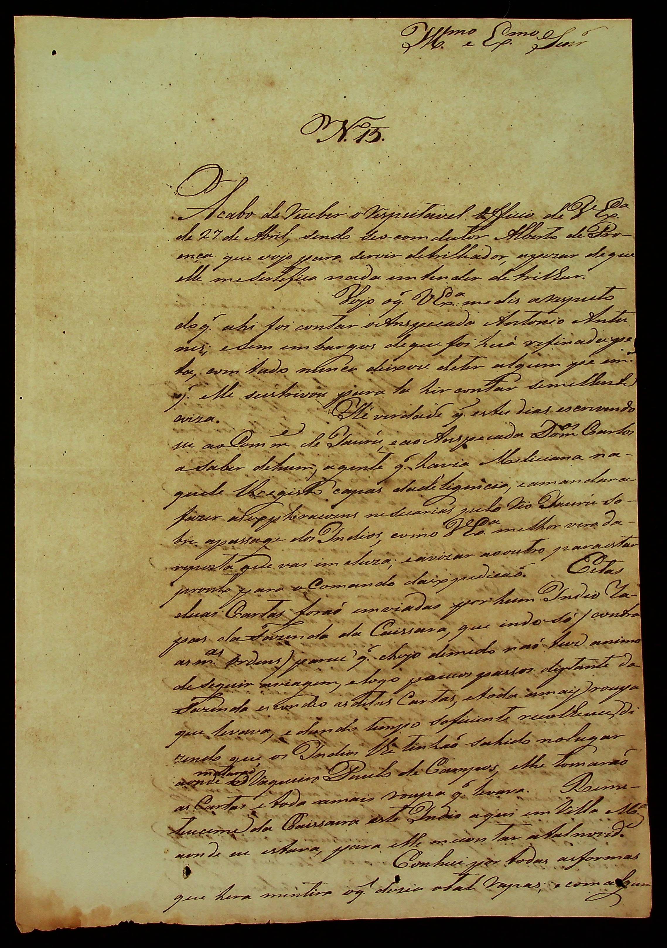 CARTA de João Pereira Leite ao [Governador e Capitão-General da Capitania de Mato Grosso] João Carlos Augusto d’Oeynhausen e Gravenberg.