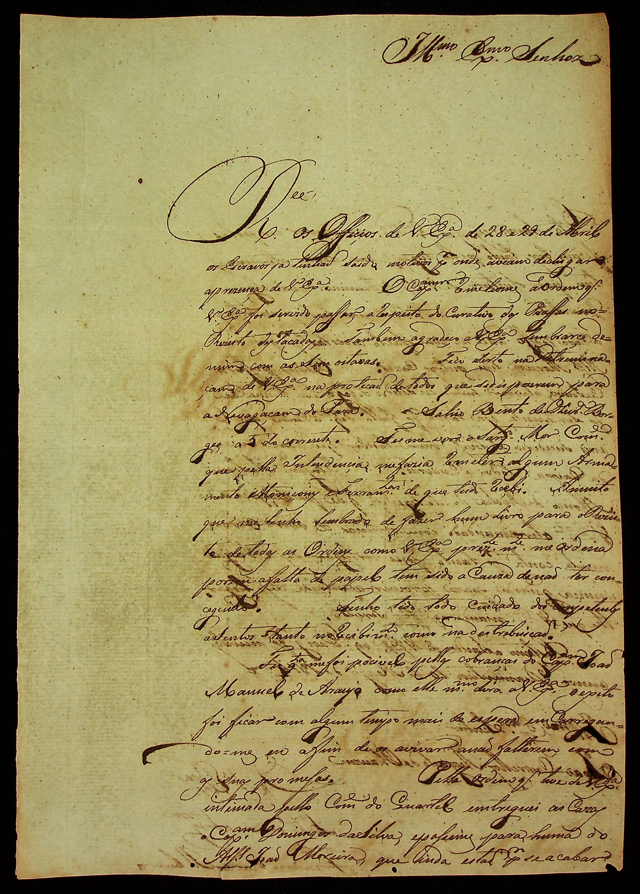 CARTA de Francisco Xavier Ribeiro ao [Governador e Capitão-General da Capitania de Mato Grosso] João Carlos Augusto d’Oeynhausen e Gravenberg.