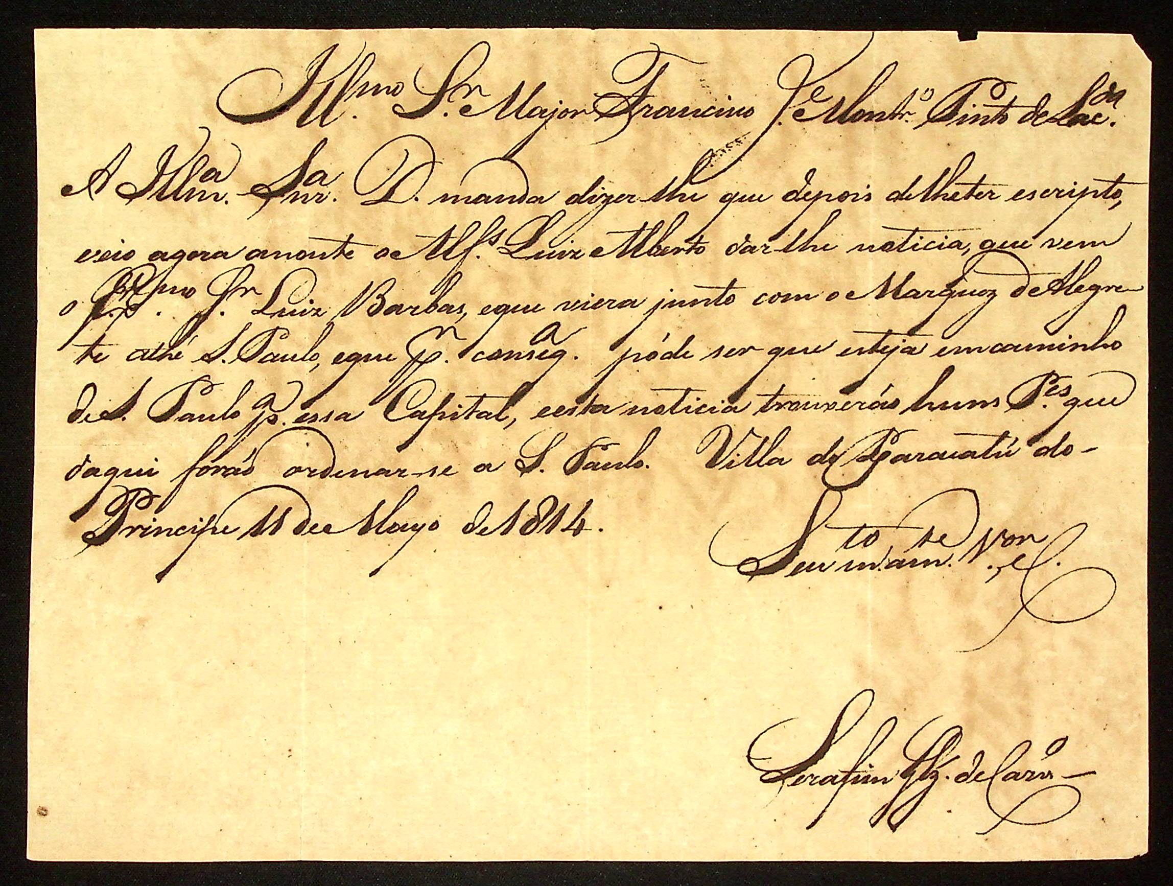 CARTA de Serafim Gonçalves de […] ao Major Francisco José Monteiro de Lacerda.