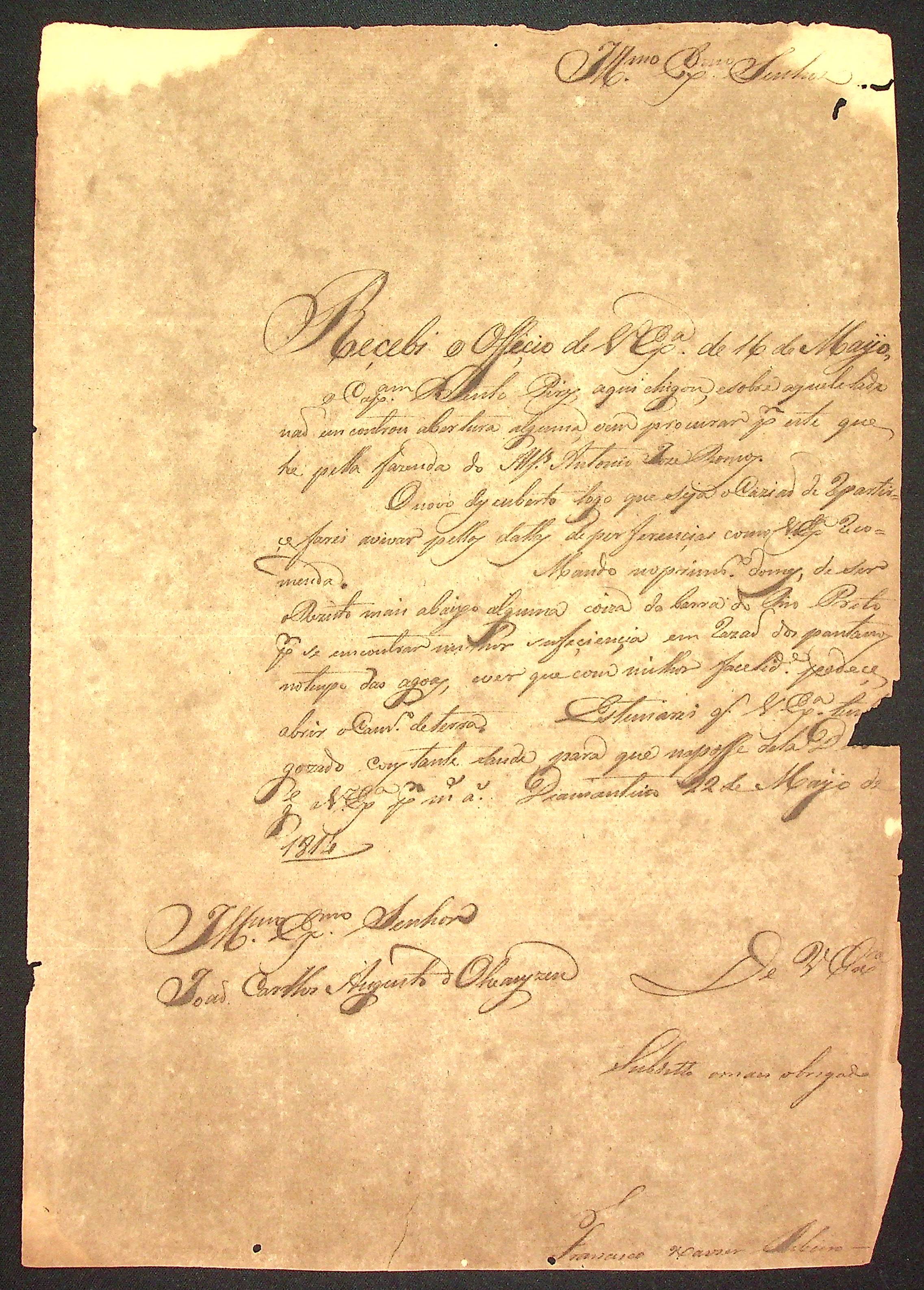 CARTA de Francisco Xavier Ribeiro ao [Governador e Capitão-General da Capitania de Mato Grosso] João Carlos Augusto d’Oeynhausen e Gravenberg.