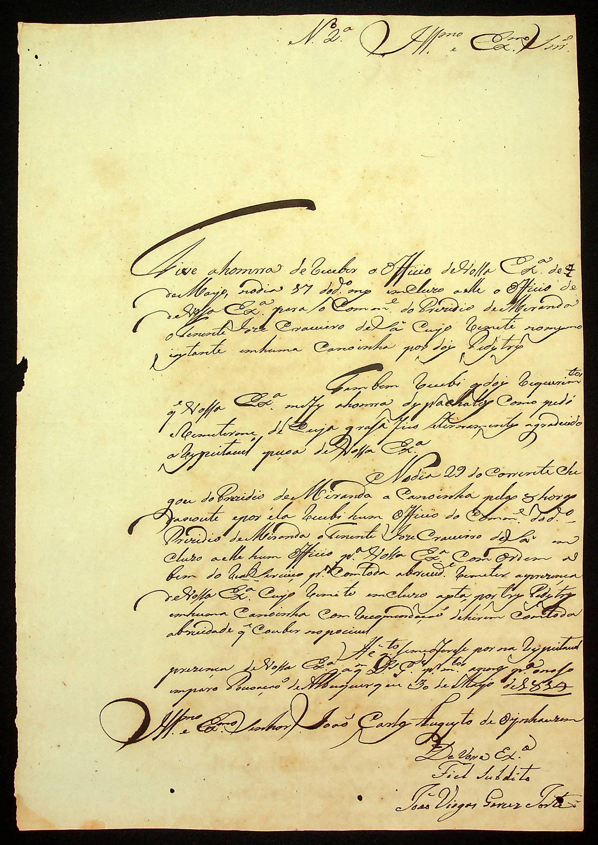 CARTA de João Viegas Garces [Forte] ao [Governador e Capitão-General da Capitania de Mato Grosso] João Carlos Augusto d’Oeynhausen e Gravenberg.