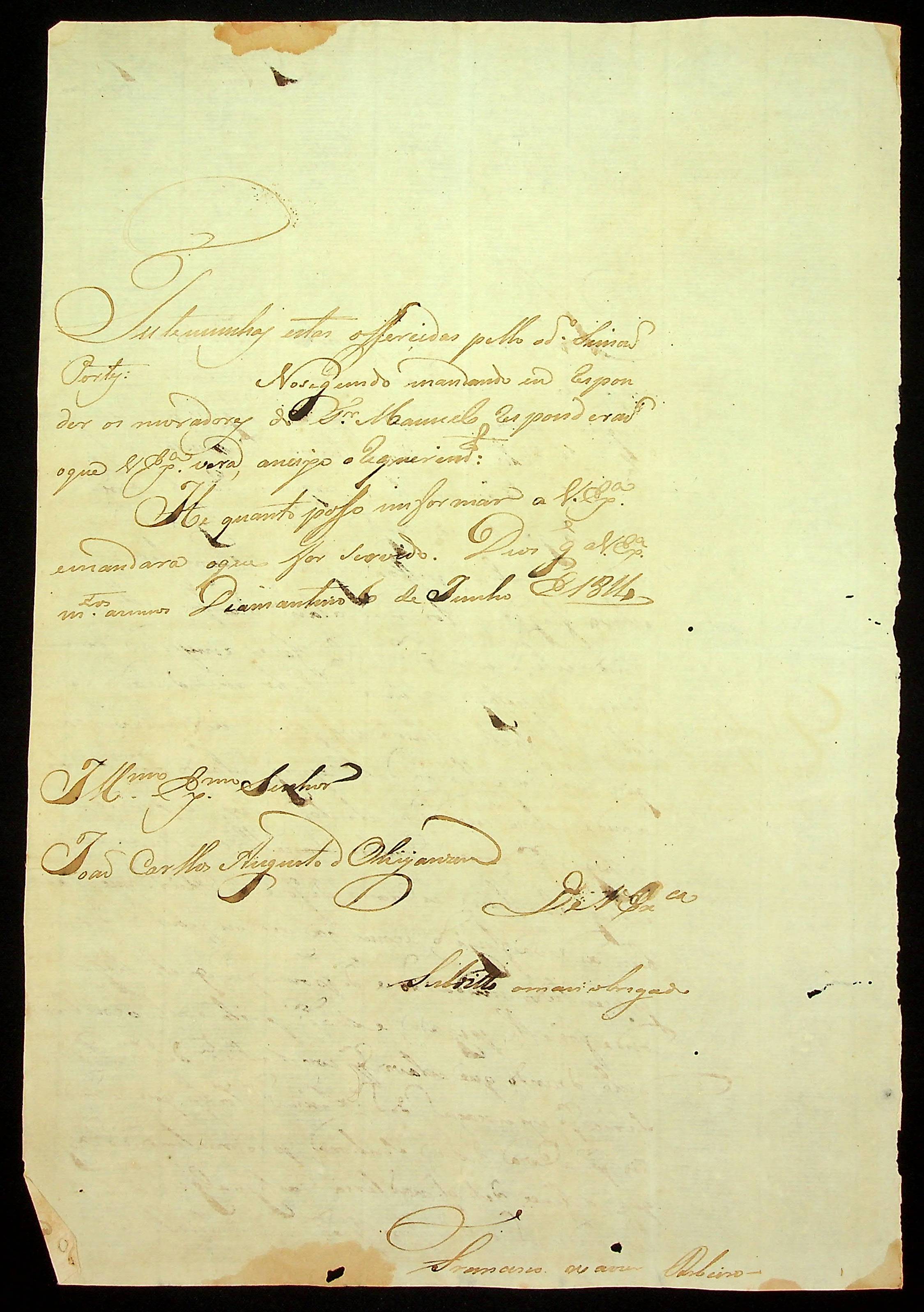 CARTA de Francisco Xavier Ribeiro ao [Governador e Capitão-General da Capitania de Mato Grosso] João Carlos Augusto d’Oeynhausen e Gravenberg.