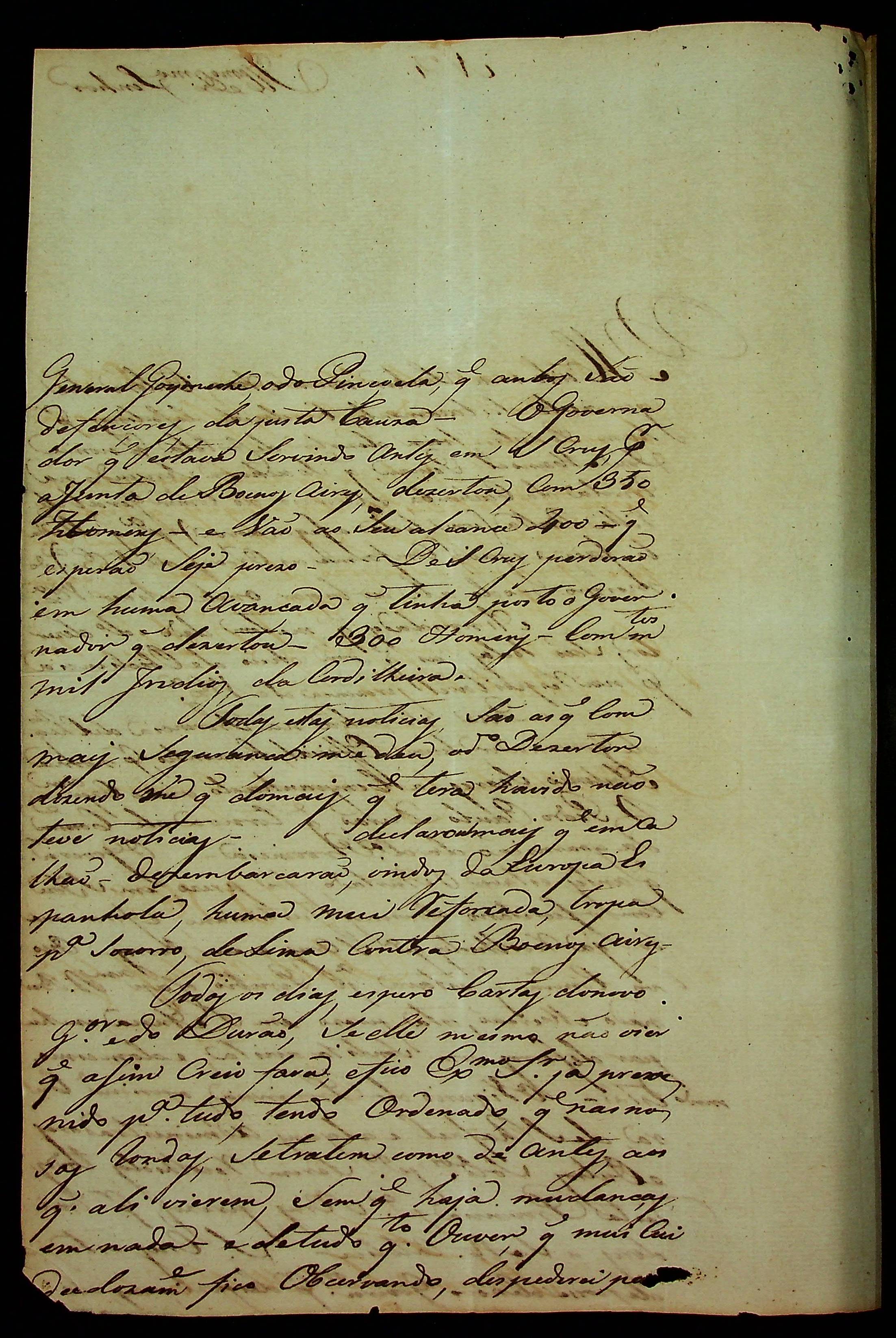 CARTA do [Capitão Comandante] Flaviano José de Matos Coelho ao [Governador e Capitão-General da Capitania de Mato Grosso] João Carlos Augusto d’Oeynhausen e Gravenberg.
