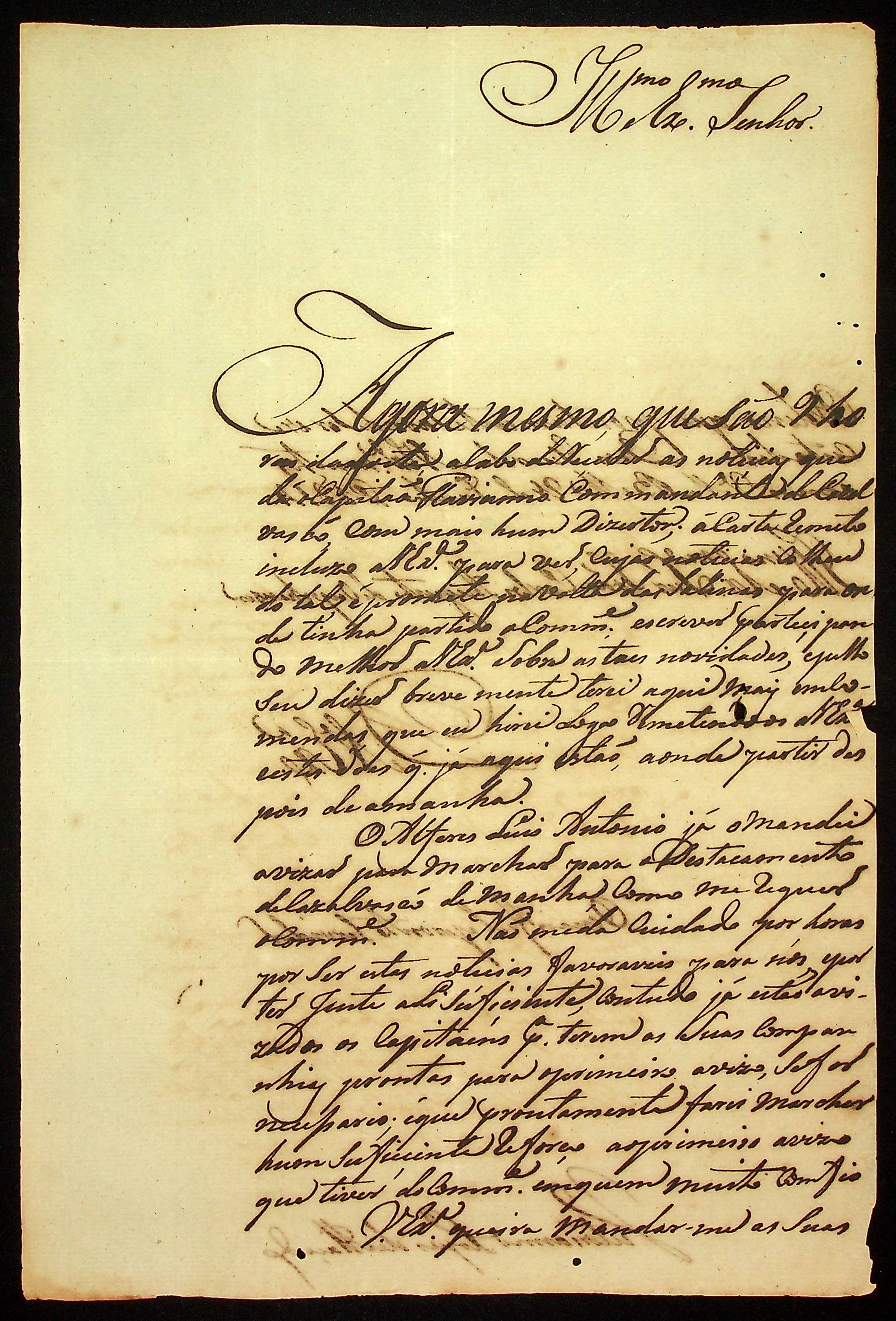 CARTA do [Tenente-Coronel] Vitoriano Lopes de Macedo ao [Governador e Capitão-General da Capitania de Mato Grosso] João Carlos Augusto d’Oeynhausen e Gravenberg.