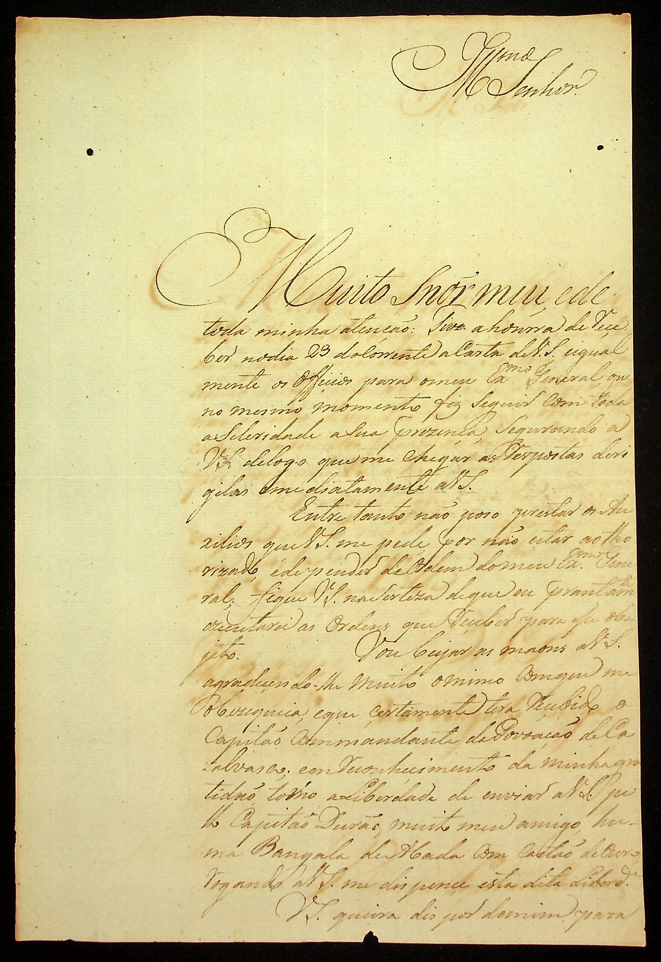 CARTA do [Tenente e Coronel] Vitoriano Lopes de Macedo ao Tenente-Coronel D. João Francisco de [Vrdacta].