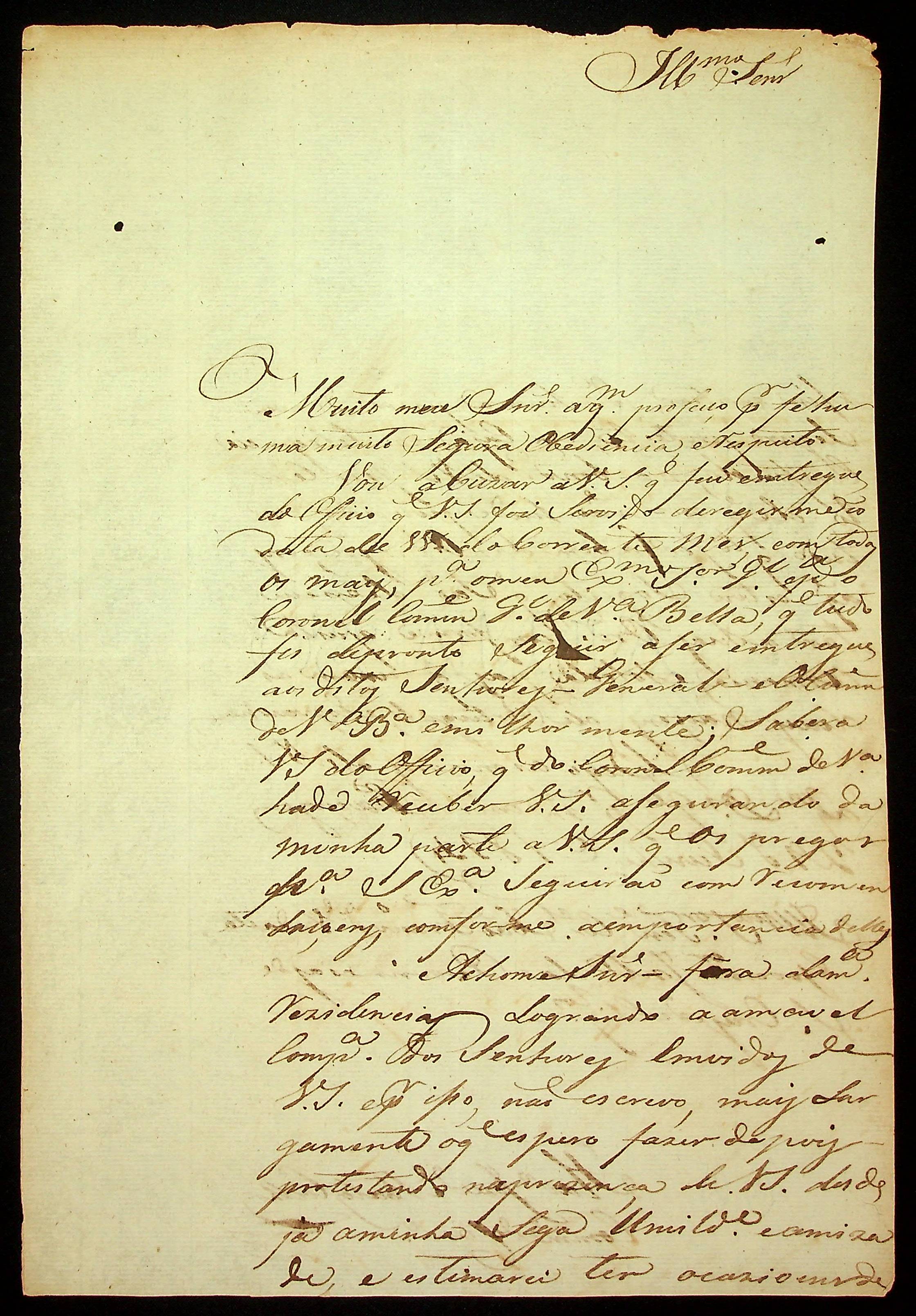 CARTA do Comandante de Casalvasco Flaviano José de Matos Coelho ao Tenente-Coronel e Governador Interino das Províncias de Santa Cruz e Chiquitos João Francisco de [Vrdacta?].