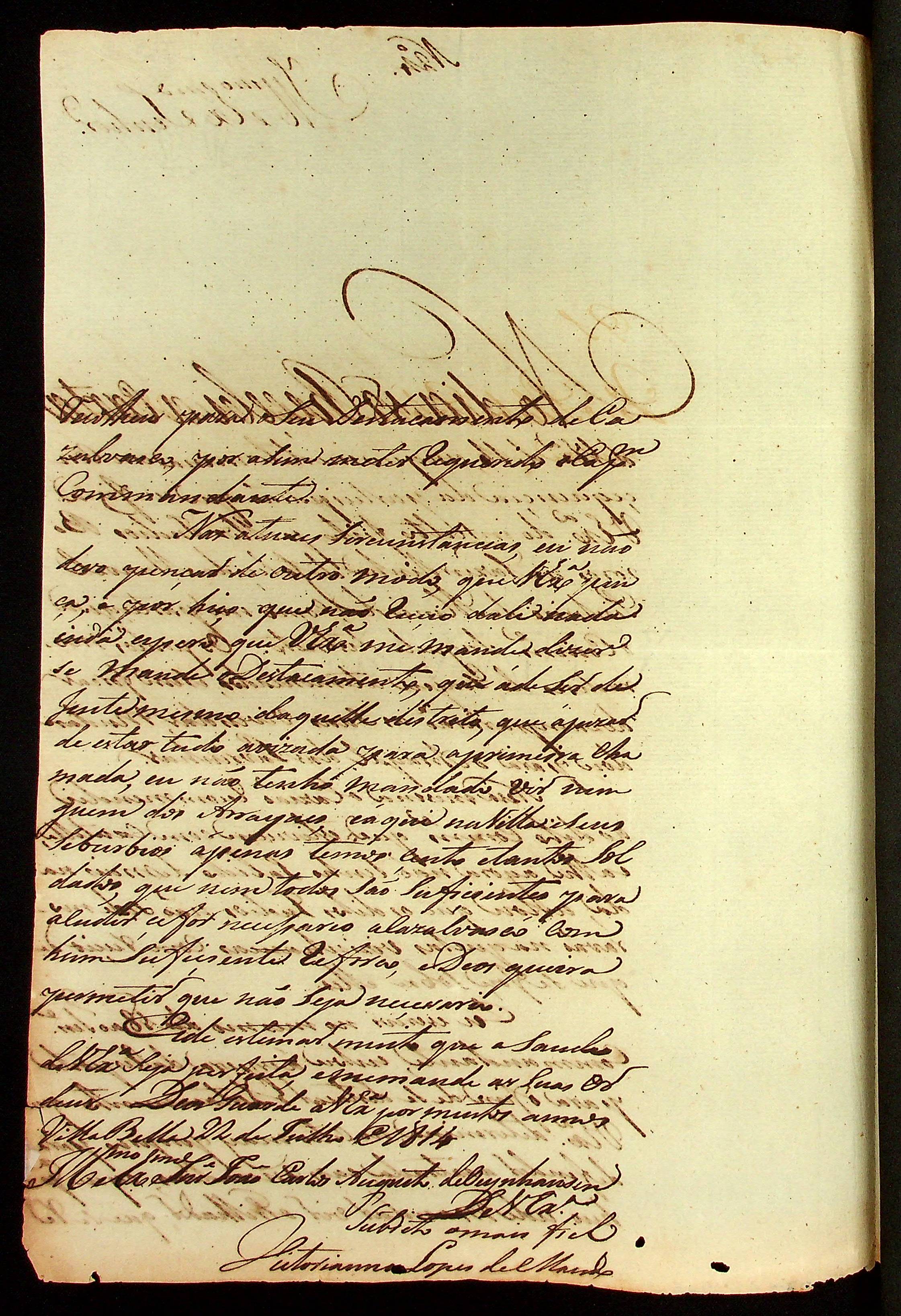 CARTA do [Tenente-Coronel] Vitoriano Lopes de Macedo ao [Governador e Capitão-General da Capitania de Mato Grosso] João Carlos Augusto d’Oeynhausen e Gravenberg.
