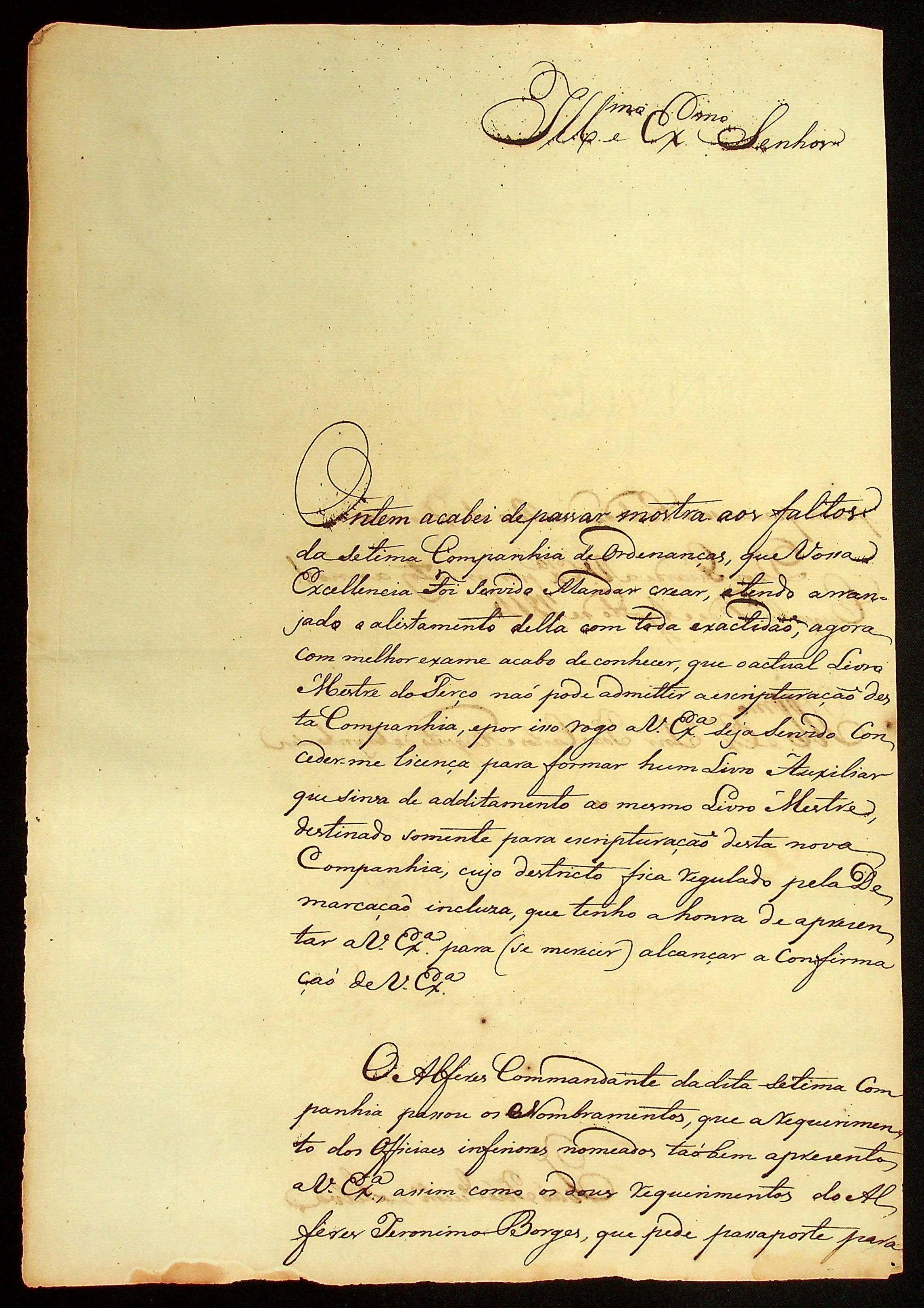 CARTA do [Capitão] João José Guimarães e Silva ao [Governador e Capitão-General da Capitania de Mato Grosso] João Carlos Augusto d’Oeynhausen e Gravenberg.
