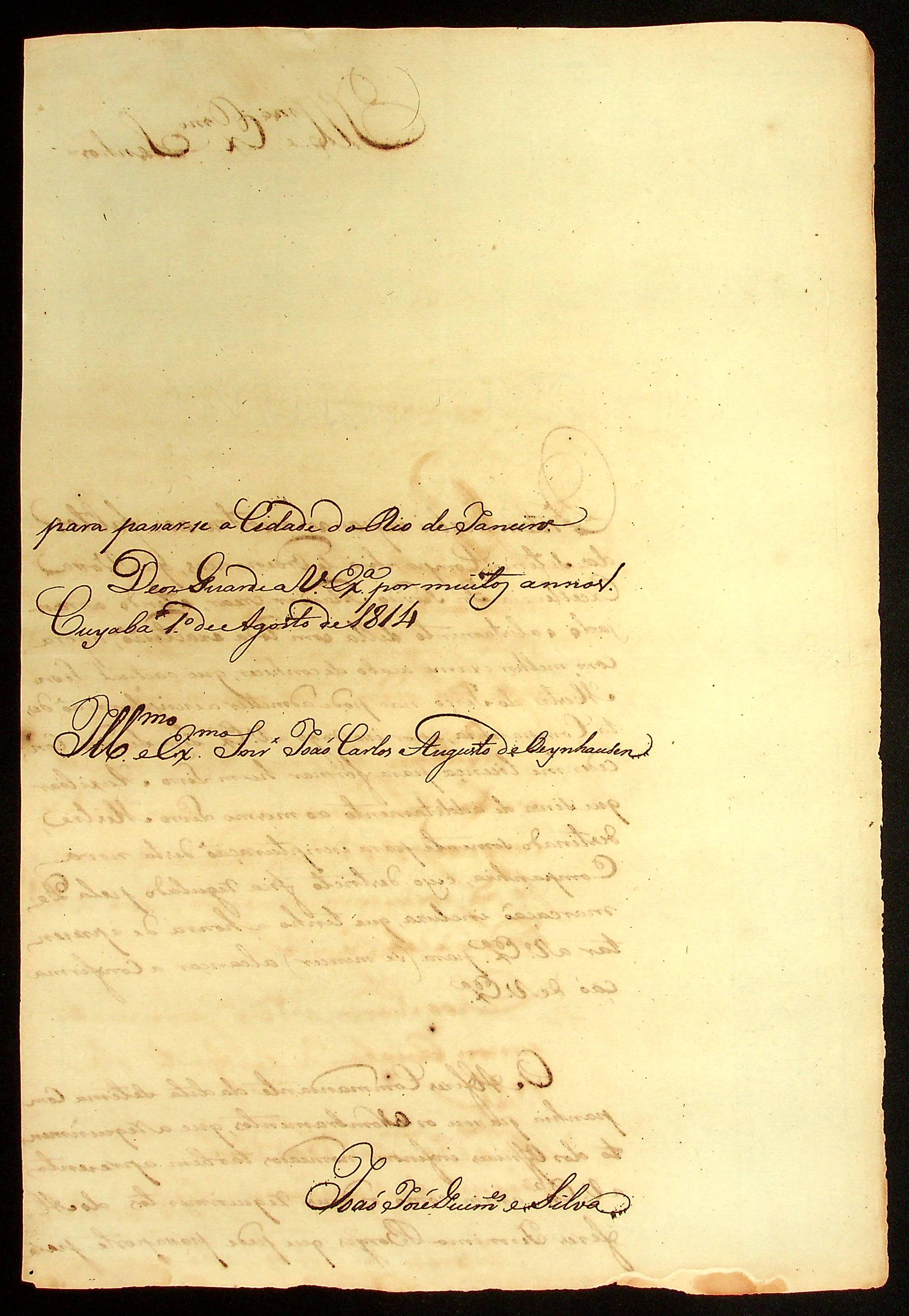 CARTA do [Capitão] João José Guimarães e Silva ao [Governador e Capitão-General da Capitania de Mato Grosso] João Carlos Augusto d’Oeynhausen e Gravenberg.