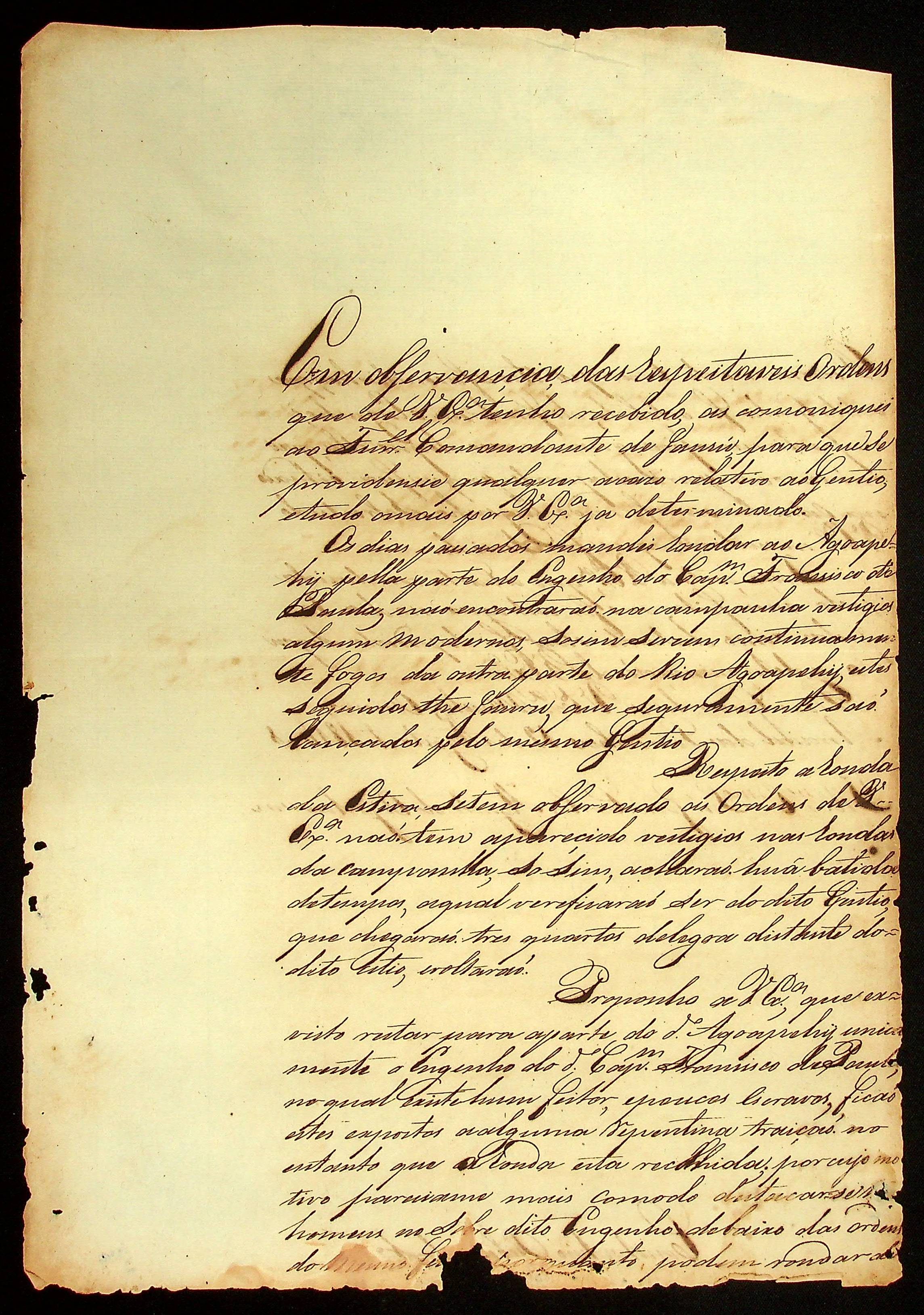 CARTA do [Tenente] Constantino Ribeiro da Fonseca ao [Governador e Capitão-General da Capitania de Mato Grosso] João Carlos Augusto d’Oeynhausen e Gravenberg.