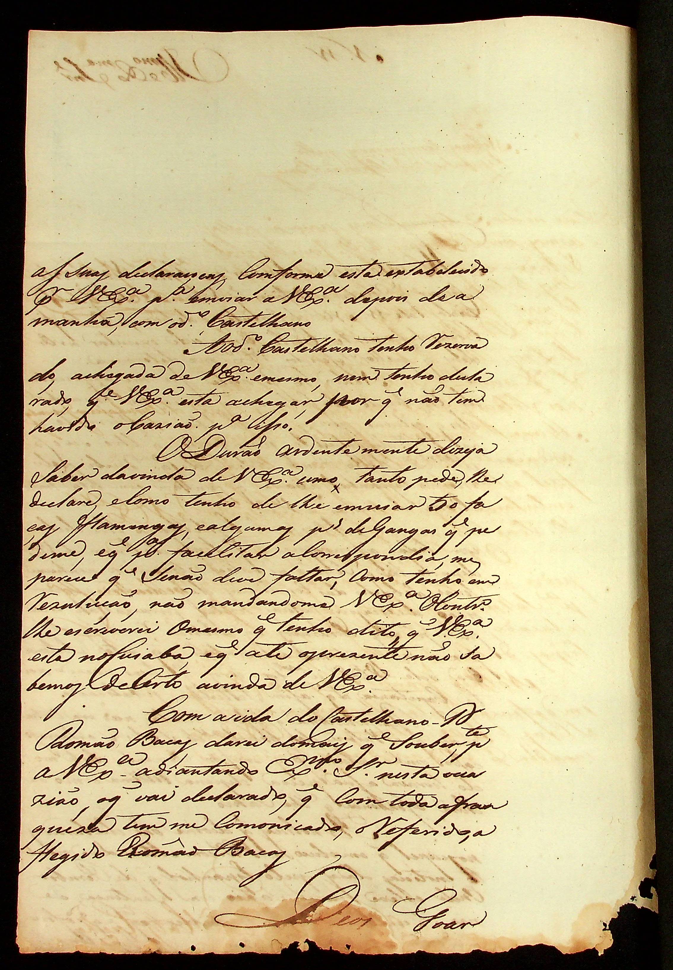 CARTA do [Capitão Comandante de Casalvasco] Flaviano José de Matos Coelho ao [Governador e Capitão-General da Capitania de Mato Grosso] João Carlos Augusto d’Oeynhausen e Gravenberg.