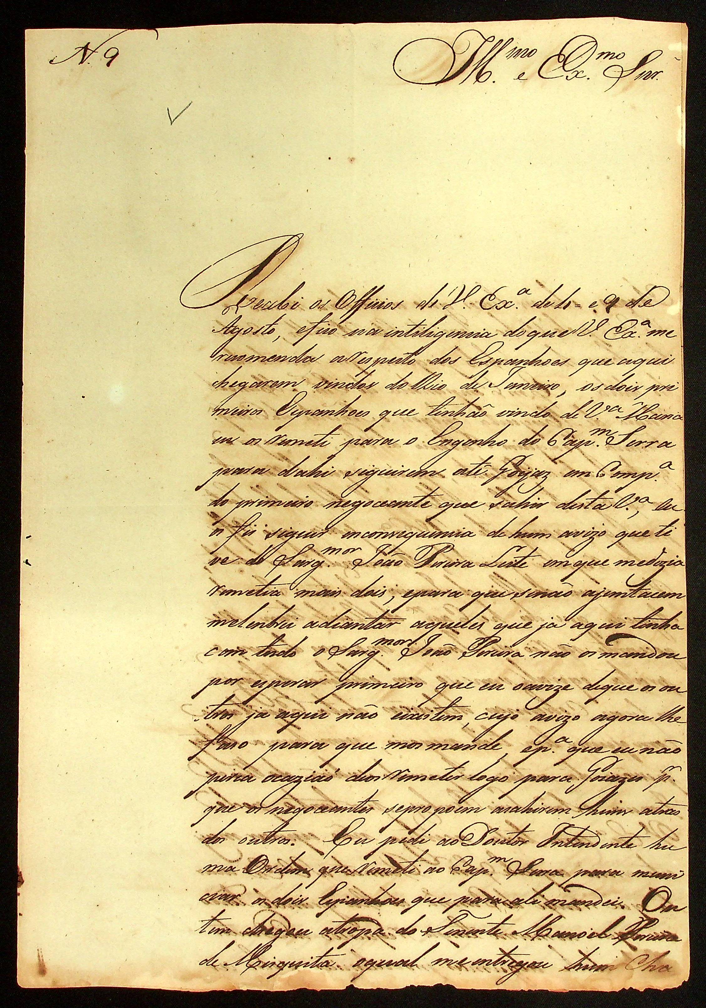 CARTA do [Sargento-mor] Jeronimo Joaquim Nunes ao [Governador e Capitão-General da Capitania de Mato Grosso] João Carlos Augusto d’Oeynhausen e Gravenberg.