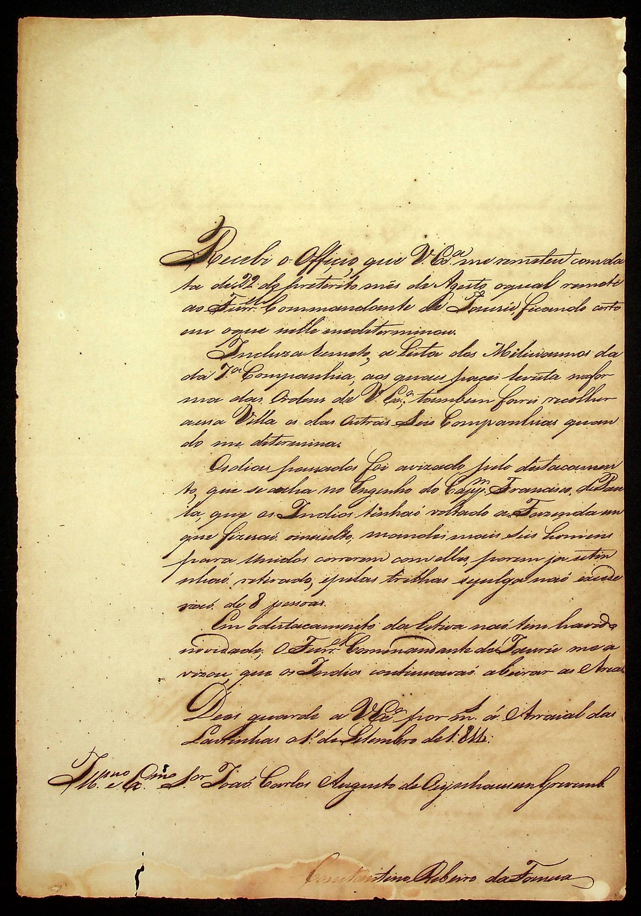 CARTA do [Tenente [Constantino Ribeiro da Fonseca ao [Governador e Capitão-General da Capitania de Mato Grosso] João Carlos Augusto d’Oeynhausen e Gravenberg.