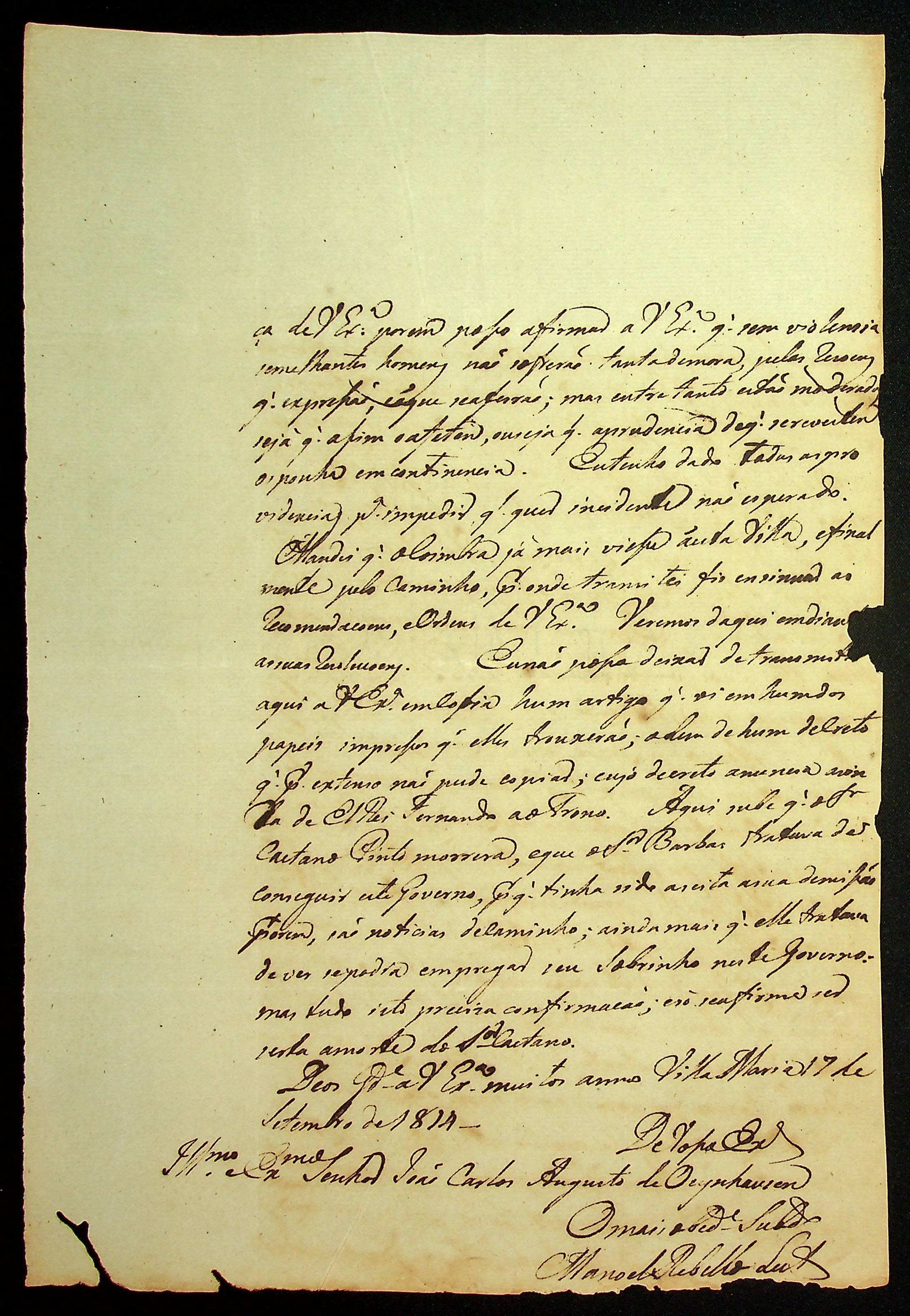 CARTA do [Sargento-mor] Manoel [Rabelo] Leite ao [Governador e Capitão-General da Capitania de Mato Grosso] João Carlos Augusto d’Oeynhausen e Gravenberg.
