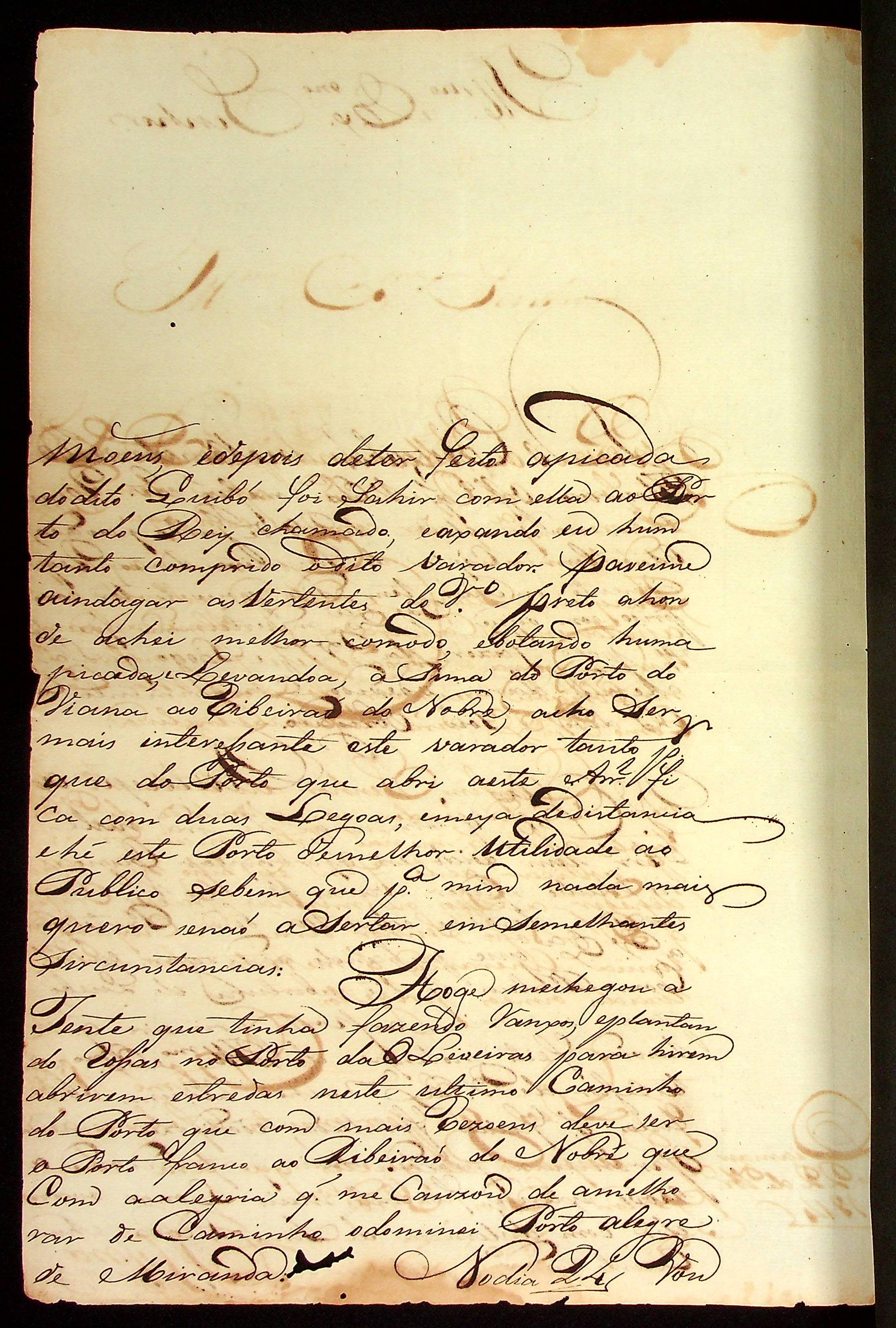CARTA do [Capitão] Bento Pires de Miranda ao [Governador e Capitão-General da Capitania de Mato Grosso] João Carlos Augusto d’Oeynhausen e Gravenberg.