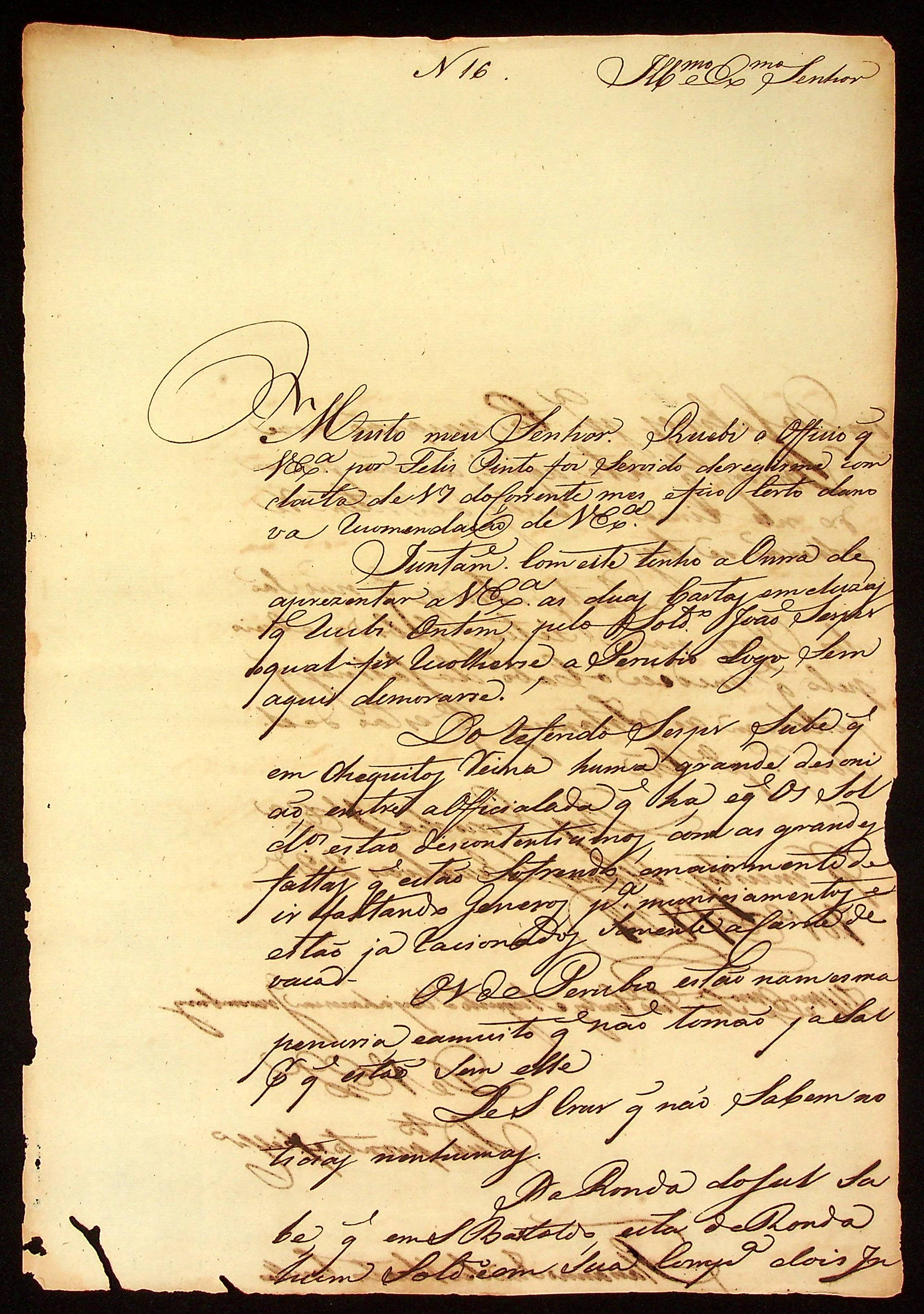 CARTA do [Capitão Comandante de Casalvasco] Flaviano José Coelho de Matos ao [Governador e Capitão General da Capitania de Mato Grosso] João Carlos Augusto D´ Oeynhausen e Gravenberg.