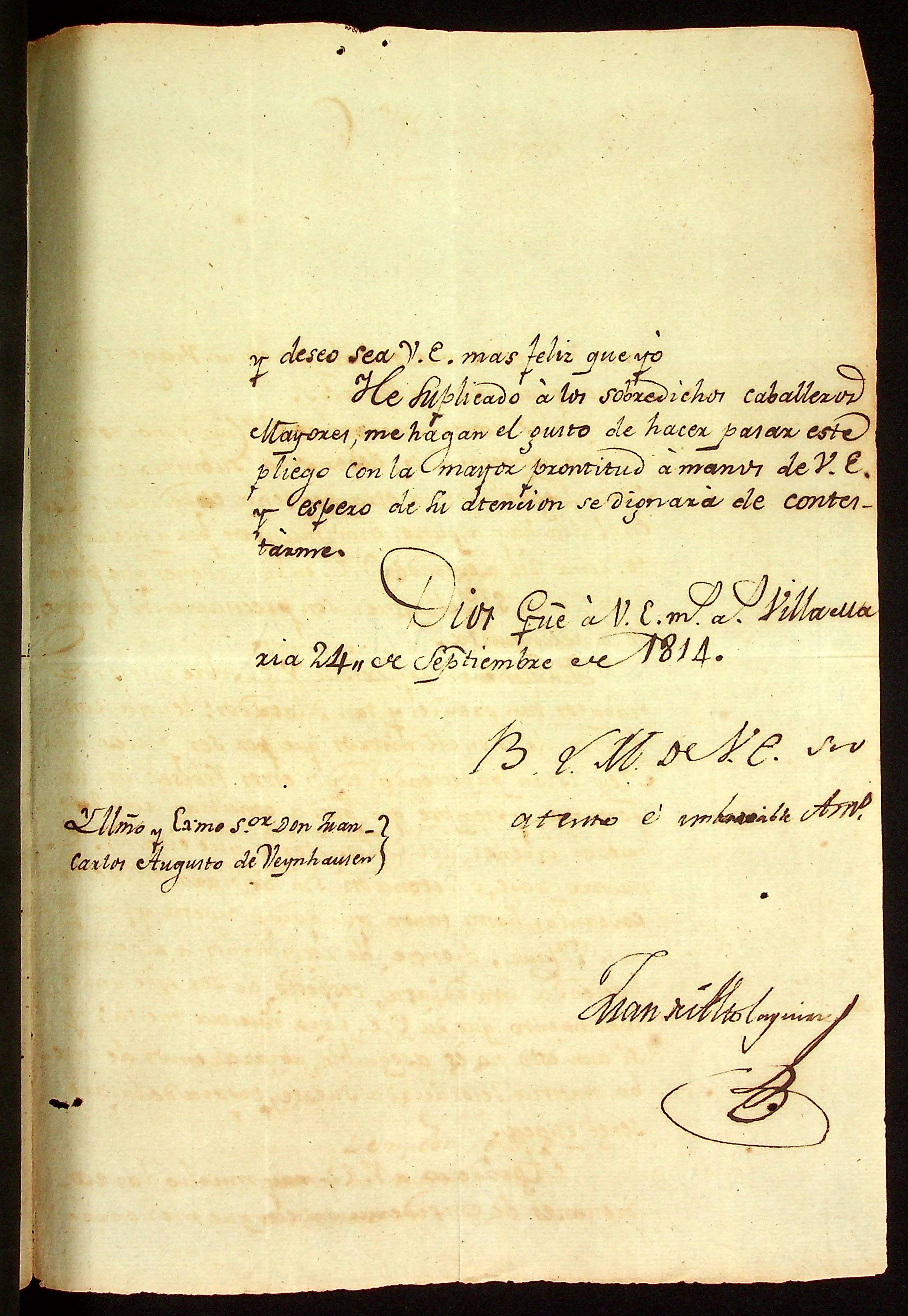 CARTA de Juan de [Altolaguirre] ao [Governador e Capitão-General da Capitania de Mato Grosso] João Carlos Augusto d’Oeynhausen e Gravenberg.