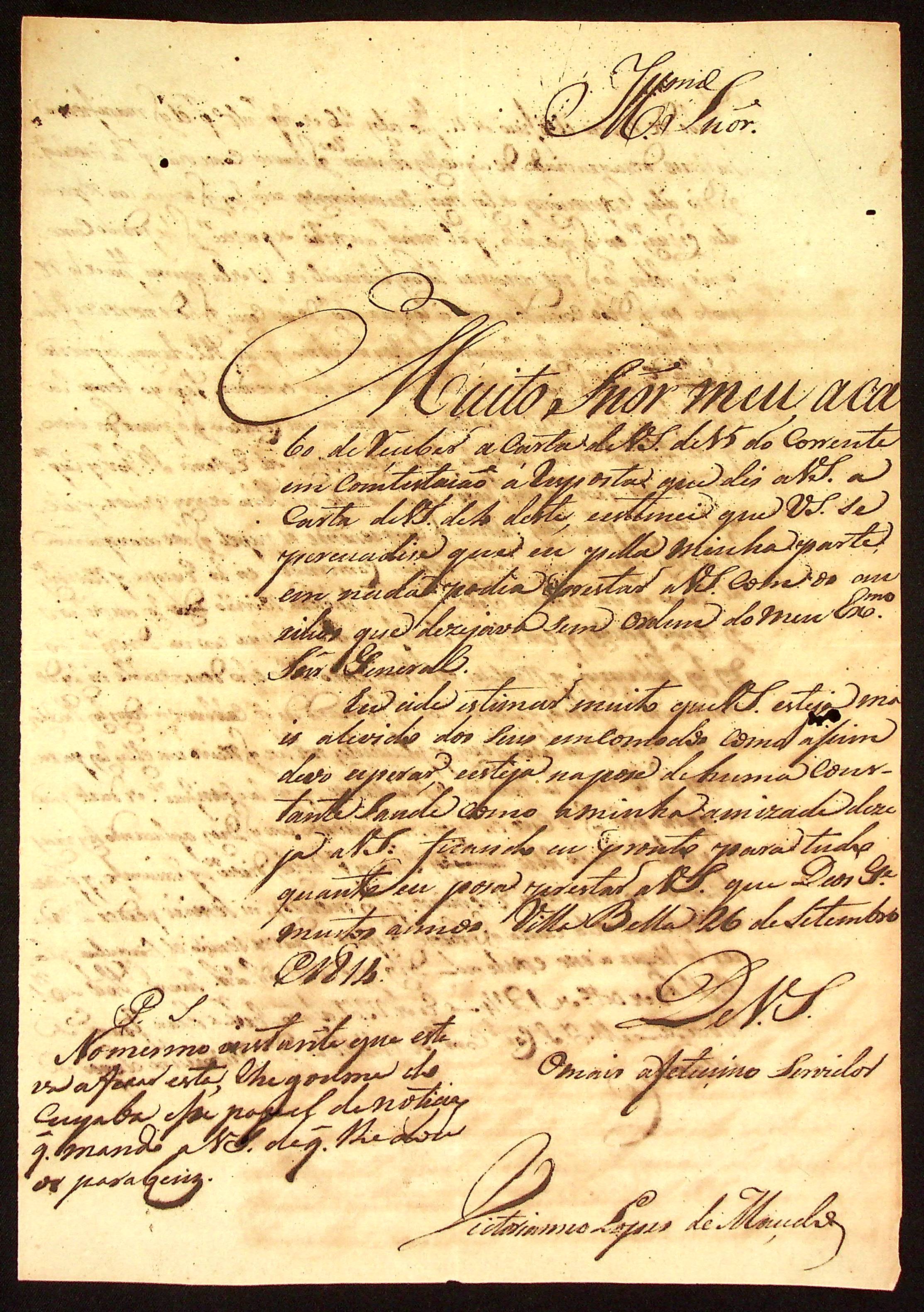 CARTA do [Tenente-Coronel] Victoriano Lopes de Macedo ao [Governador e Capitão-General da Capitania de Mato Grosso] João Carlos Augusto d’Oeynhausen e Gravenberg.