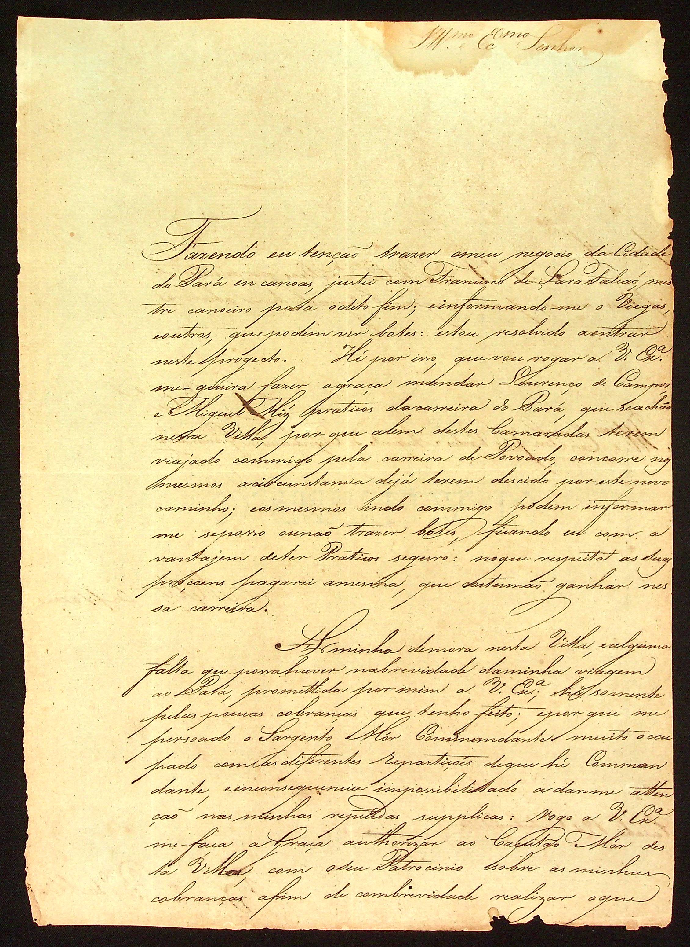 CARTA do [Capitão] Bento Pires de Miranda ao [Governador e Capitão-General da Capitania de Mato Grosso] João Carlos Augusto d’Oeynhausen e Gravenberg.