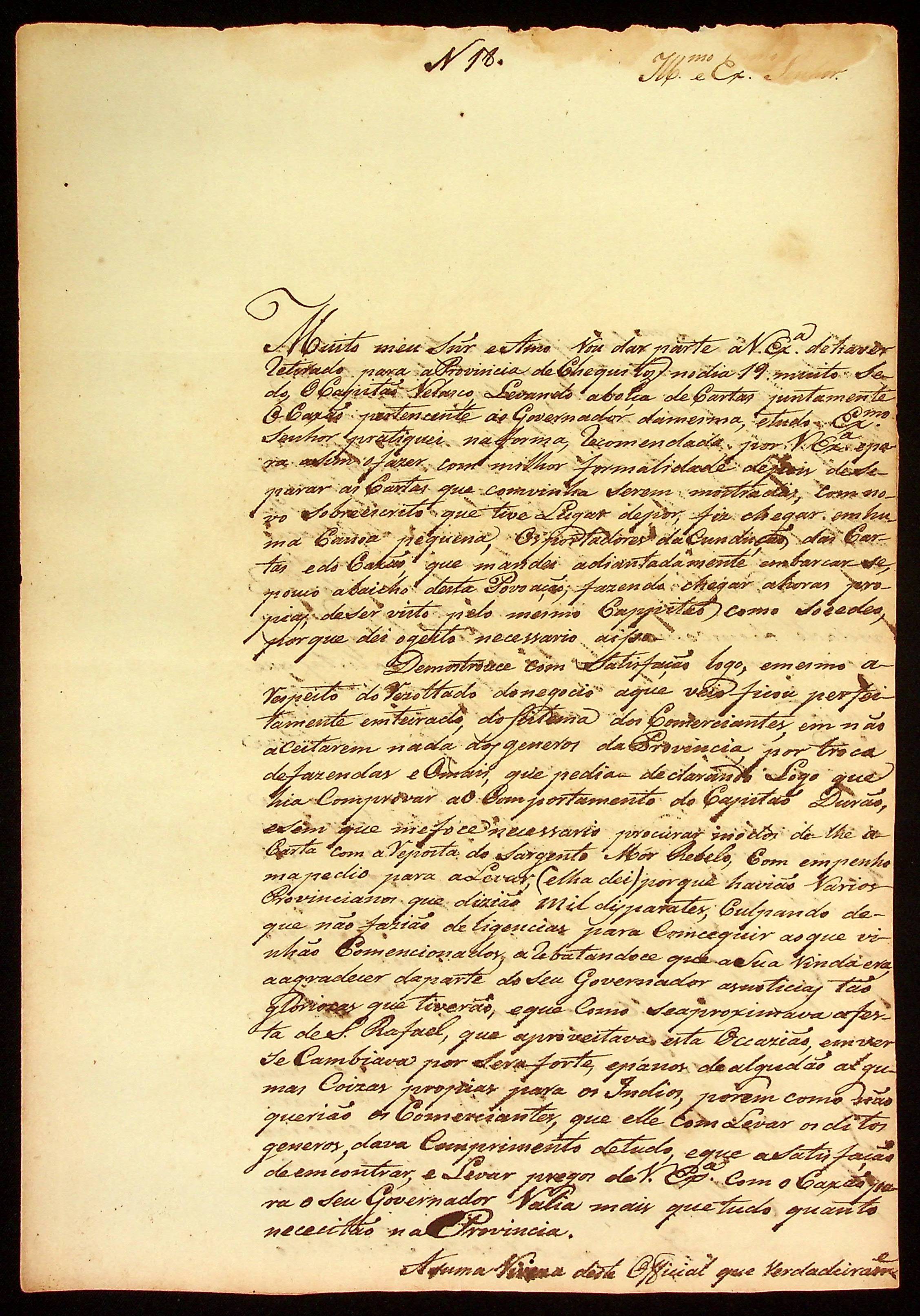 CARTA do [Capitão Comandante de Casalvasco] Flaviano José de Matos Coelho ao [Governador e Capitão-General da Capitania de Mato Grosso] João Carlos Augusto d’Oeynhausen e Gravenberg.