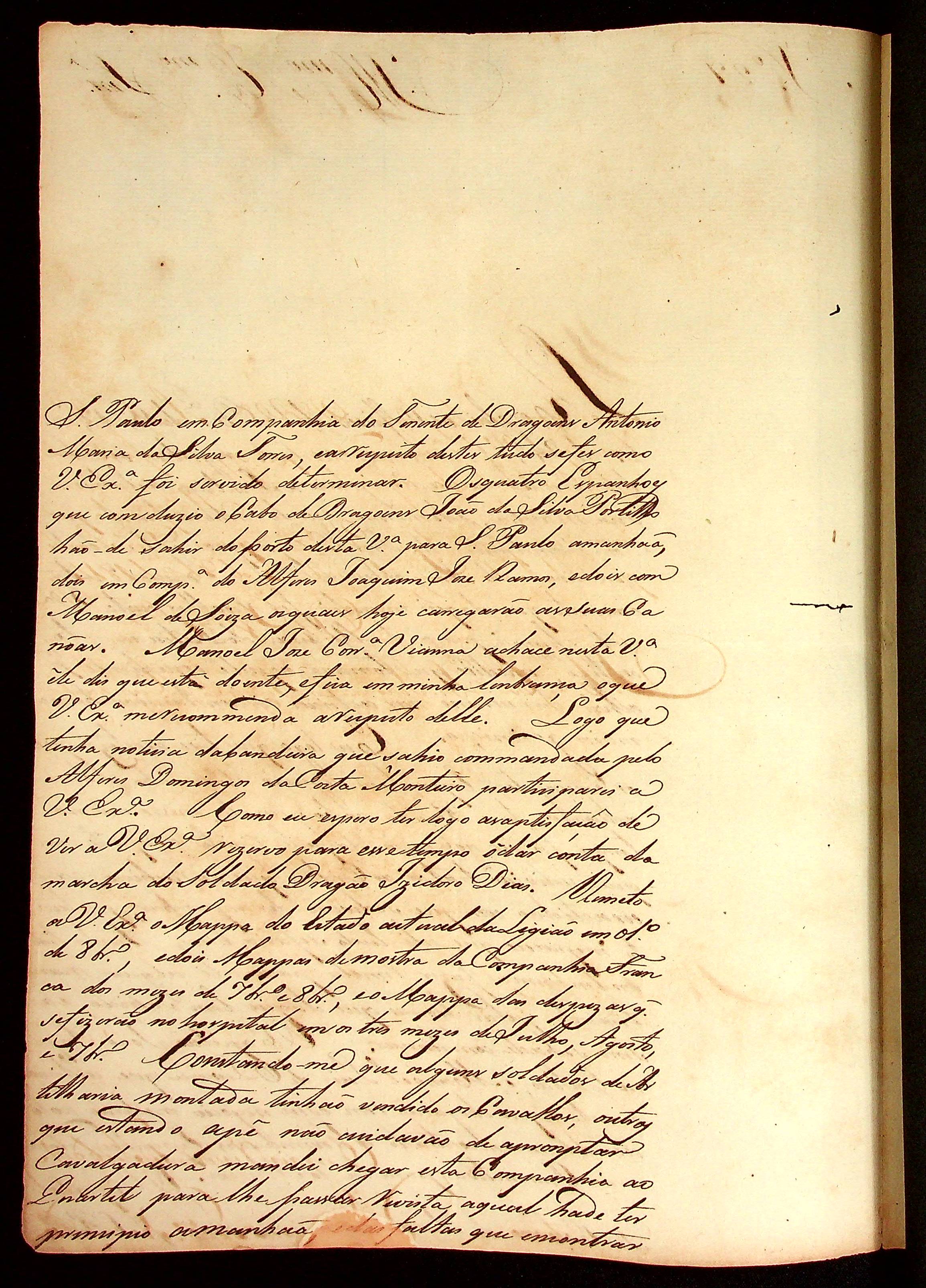 CARTA do [Sargento-mor] Jeronimo Joaquim Nunes ao [Governador e Capitão-General da Capitania de Mato Grosso] João Carlos Augusto d’Oeynhausen e Gravenberg.
