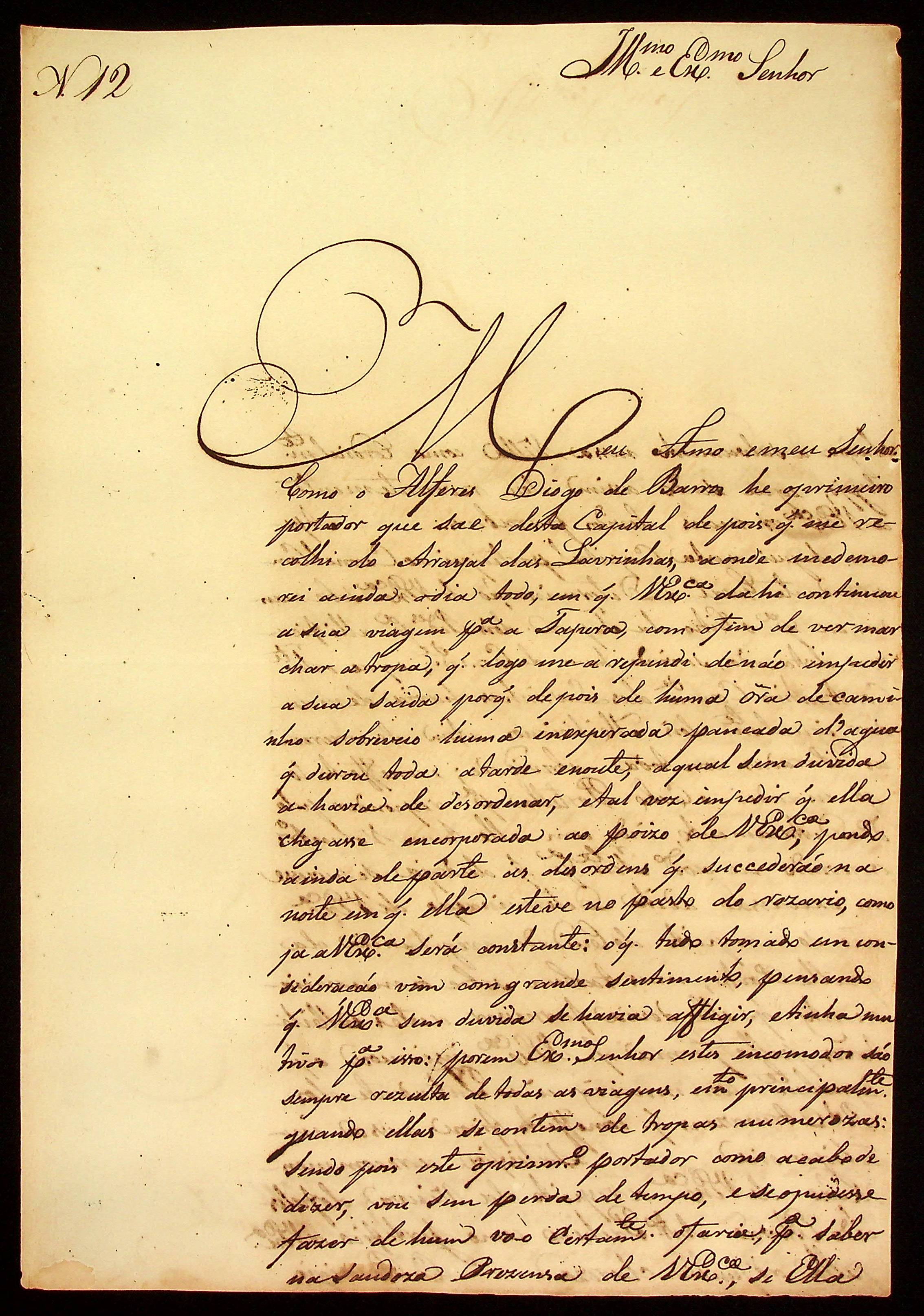 CARTA do [Sargento-mor] Manoel [Rabelo] Leite ao [Governador e Capitão-General da Capitania de Mato Grosso] João Carlos Augusto d’Oeynhausen e Gravenberg.